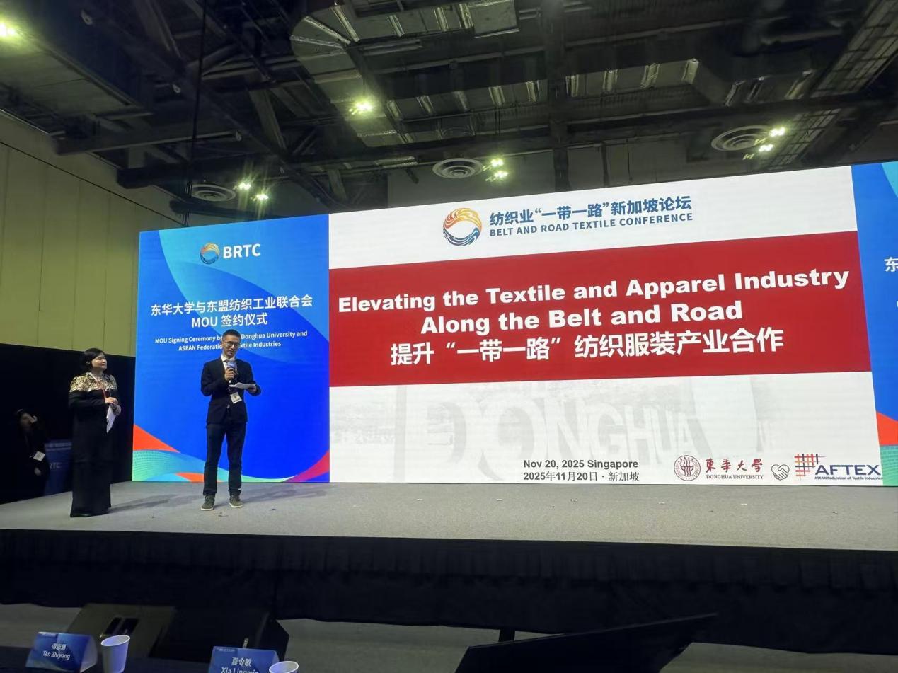11月20日,2025纺织业“一带一路”新加坡论坛在新加坡金沙会展中心举行。论坛以“全球纺织产业协同与创新未来”为主题,汇聚30多个国家和地区的政府机构、行业组织及企业代表。东华大学澳門漁人码头 应邀参会,并代表澳門漁人码头 与东盟纺织工业联合会签署合作协议,成为本次论坛最重要的教育与人才合作成果之一。