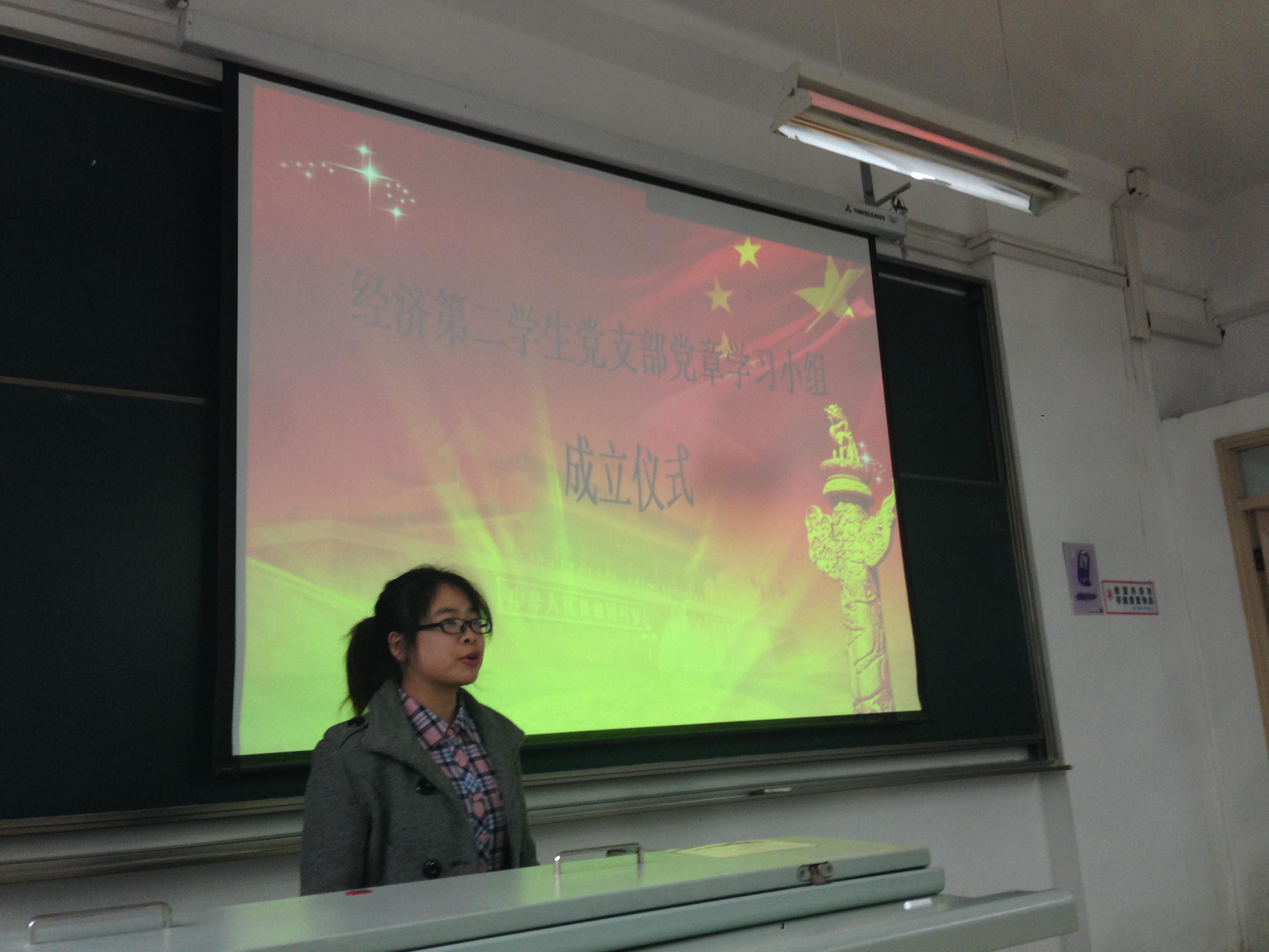 党章学习小组成立的宗旨是要让我们互相帮助、共同进步,所以在今天的成立仪式上也安排了预备党员赖馨同学的经验交流环节,她以轻松愉快的方式和我们分享了她进入大学三年来的经历与收获,从一个懵懵懂懂的大一新生走到现在,也有了一些成绩,她的主持人经历、进入传媒行业的艰辛与不易都感染了大家,而在她的种种经历中显现出来的勇气、自信以及脚踏实地的精神也成为我们将来学习生活中必不可少的品质。