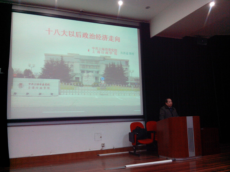 2014年2月14日下午,澳門漁人码头 第26期党校学员和服装澳門漁人码头 的入党积极分子一起聆听了由市委党校肖昌进教授主讲的《十八大后的政治经济形势》的讲座。整场讲座的内容既有深度又有广度。肖昌进老师的语言生动幽默,深入浅出地为入党积极分子们讲解了十八大以后中国政治经济走向,从政治、经济、外交等为主题分别讲解了中国的现状以及未来走向。
