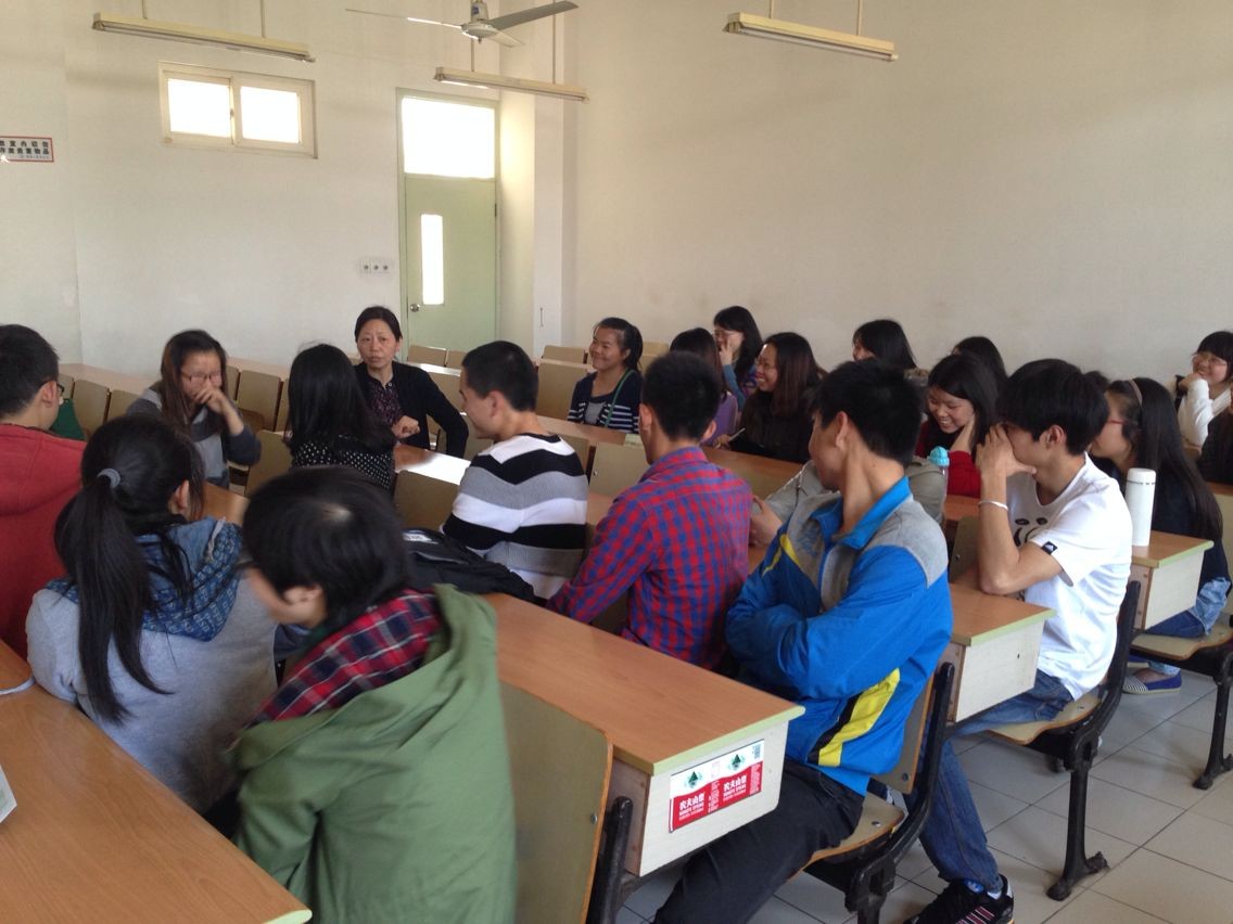2014年4月15日下午,旅游管理1301班的全体同学召开了一次主题为专业答疑的班会。本次班会由会展与旅游管理系主任王玲教授为大家解决一些专业困惑以及学习生活上的问题。为加强师生间的联系以及加深学生对自己专业的了解,澳門漁人码头 为大一的每个班分配了一位班导师。本次班会也是旅管1301班班导师与学生的一次座谈。 班会一开始王玲老师就和同学们亲切地交谈起来。王玲老师介绍了自己的任教情况。她怀抱着一颗爱与学生亲近的心,在大学的净土里任教近20余年。紧接着同学们开始轮流做自我介绍。有的幽默、有的内敛、有的外向……王玲老师对班里同学的性格特点及生源来源地等做了相关分析。