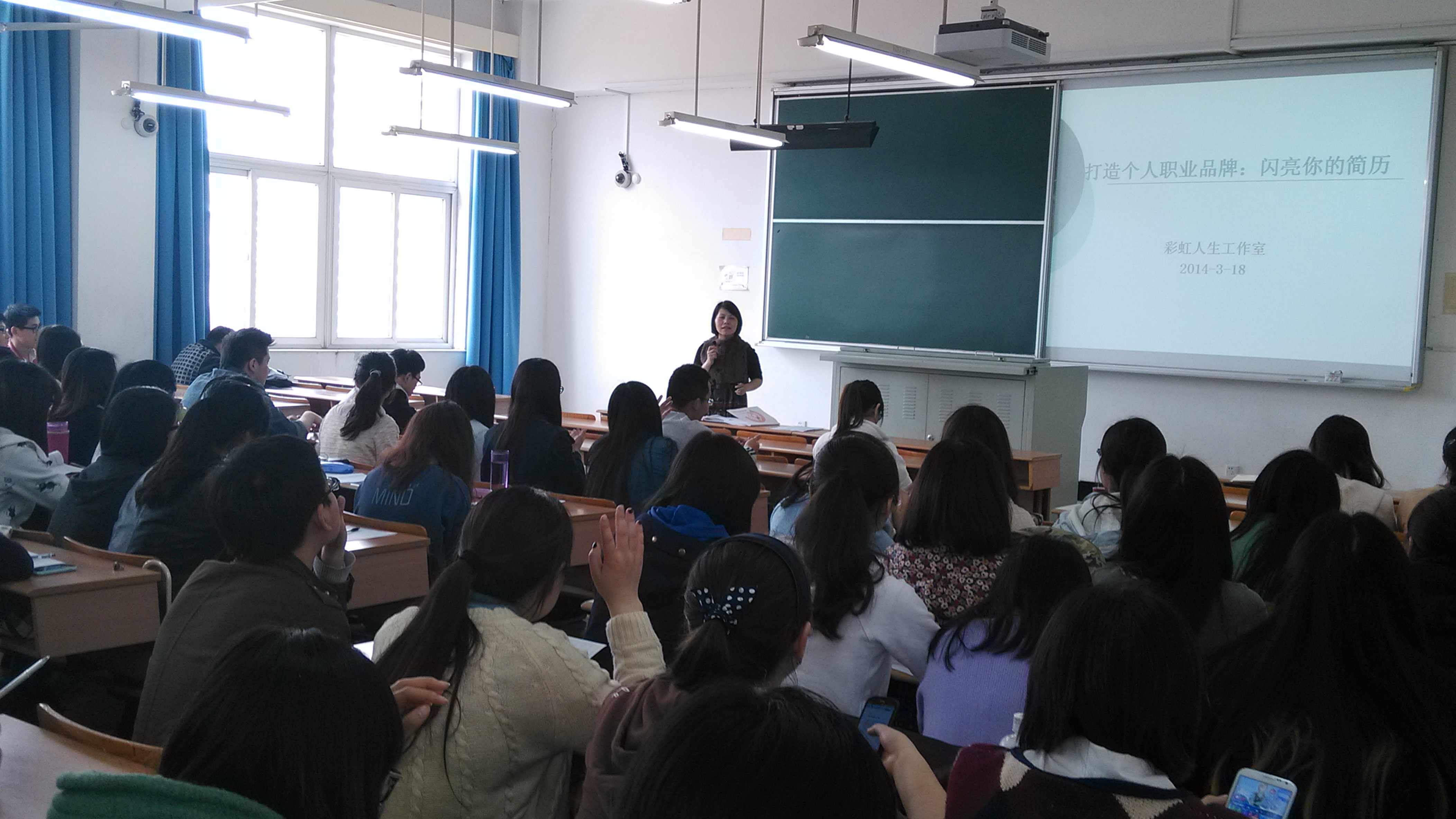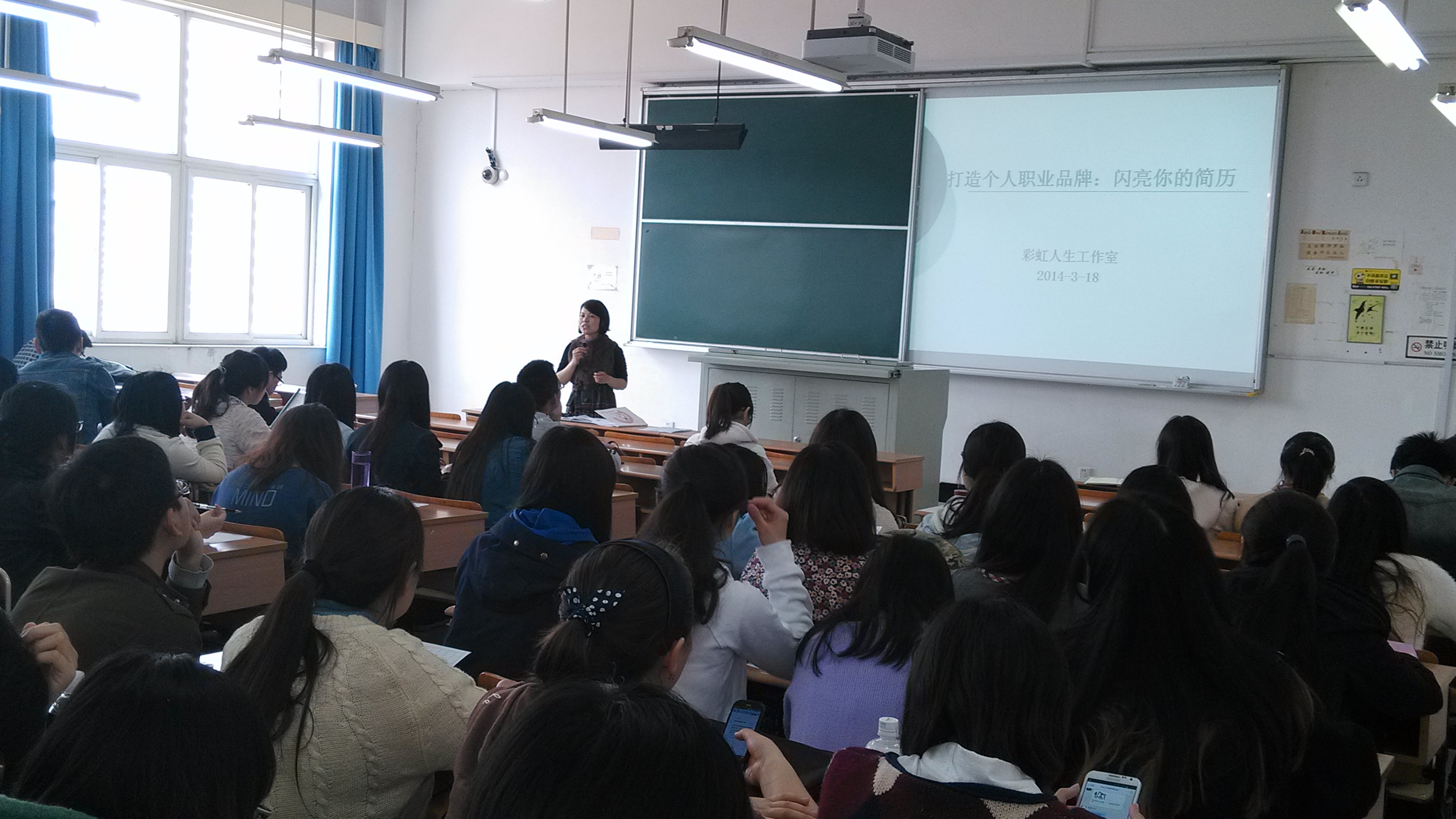 2014年3月18日13点30彩虹人生工作室负责人王丽华老师在澳門漁人码头 四教501教室召开了闪亮简历的专题讲座,对象为澳門漁人码头 工商大类2011级全体本科生。讲座的内容包括简历前的准备工作、简历要素和类型、中文简历的制作和简历的投递四个模块,旨在帮助应届大学毕业生优化个人简历,增加求职的成功率。