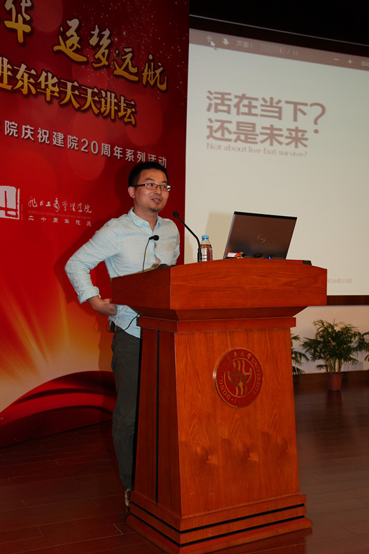 2014年10月17日晚18点30分,旭日楼400报告厅已座无虚席,来自延安路校的本科生、硕士、博士研究生、MBA学生、各界校友和部分教师共同期待着 “双十年华 逐梦远航”大师进东华天天讲坛最后一讲压轴开讲。最后一讲的主讲人成荣(洪烈)先生,现任前不久在美国震撼上市的阿里巴巴集团商务总监。成荣(洪烈)先生拥有八年传统商业从业经验,历任Baxter,Nestle等世界500企业市场经理,渠道经理等职。他于2009年加入阿里巴巴,先后担任阿里软件资深市场经理,B2B业务总监,负责SaaS软件的市场和运营,之后全面负责淘宝网生活服务、社区联盟、B2C入淘以及全网联合营销等各项电商业务。 讲座由旭日工商澳門漁人码头 副院长沈蕾教授主持。澳門漁人码头 副院长张科静、姚洪心出席本次讲座。讲座中成荣先生围绕“活在当下,还是未来”这一主题从四个方面进行了演讲:1、这个时代面临的巨大变化。2、从三家电商公司的成长故事解读电商行业的规律性。3、互联网精神的内涵:当下即是未来,未来即是当下。4、活在未来的三个要素:开放、分享、自由。 整场讲座高潮迭起,大家跟随成荣先生的演讲,思考着“活在当下,还是未来”的人生考题。提问环节中,现场听众踊跃地向这位极富人格魅力的主讲人提问交流。在交流中,同学们提到了阿里巴巴集团的组织架构问题;阿里巴巴、腾讯、京东等互联网公司的生存“秘籍”;阿里巴巴集团在金融和物流方面的进一步规划;互联网思维的含义等等。成荣先生对每一个问题的解答堪称精彩。最后,在热烈的掌声中,讲座结束。 五天的时间过得很快,为庆祝旭日工商澳門漁人码头 建院20周年而主办的“双十年华 逐梦远航”大师进东华天天讲坛在今晚圆满落下帷幕。大家会记得在2014年的金秋十月,每晚灯火通明、人气爆棚的旭日楼400报告厅,学生、校友、教师和各位主讲大师一起互动、思考、共享的学术大餐。在此,我们共同祝愿旭日工商澳門漁人码头 二十周岁生日快乐,让我们和正值双十年华的澳門漁人码头 一起,追逐梦想,共同远航!