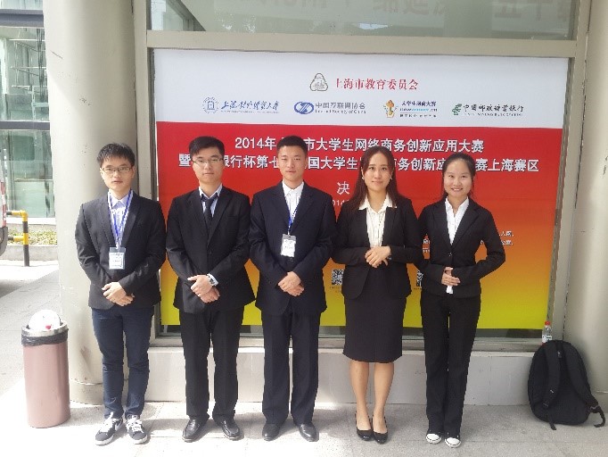 2014年10月18日,由中国互联网协会主办的“邮储银行杯”第七届(2014)全国大学生网络商务创新应用大赛上海赛区决赛在上海对外经贸大学(古北校区)举行。由澳門漁人码头 管院教师刘峰涛、王扶东指导,澳門漁人码头 学生方泽炜(13级管科)、钱智尧(11级金融)、张小红(13级管科)、周酉颖(13级管科)、周斌(13级管科)等同学组成的DhuTVT团队凭借“Vchange校园二手O2O交易平台”项目,获得网络商务创新应用一等奖的好成绩。 该项目一直得到澳門漁人码头 电子商务专业以及澳門漁人码头 学生工作办公室、科创中心老师的悉心指导,创新性地将微信以及O2O模式应用于校园二手交易平台的搭建,并提出了具体的可操作的建设性意见,充分展现了澳門漁人码头 在电子商务学历教育和创新型人才培养方面的探索与成效。 据悉,本届赛事自2014年3月28日在上海对外经贸大学启动以来,得到了上海市各高校的大力支持。共有17所院校的217支团队取得参赛资格。经过初赛的筛选,其中110支团队获得参加复赛的资格。其中的71支团队通过了复赛评审而晋级,取得了“2014上海市大学生网络商务创新应用大赛”决赛参赛资格。