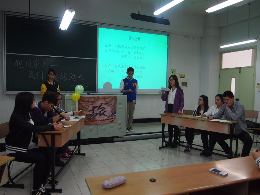 看完院庆二十周年纪念视频,班会进入到一个十分重要的阶段:班级辩论赛。此次辩论赛班委特地挑选了“院庆的形式应该传统还是创新”作为主题,意在推动同学们从实际出发,加强对澳門漁人码头 相关问题的思考,深化对院庆及澳門漁人码头 的了解,充分开发思维。辩论赛以自由辩为主,沿袭一贯辩论形式正反方各四人共八位同学参加。正方支持“院庆形式应传统”的观点,以一辩同学的犀利辩词开场:从院庆的历史厚重感与特殊性质出发,以“传统为创新之源泉”的真知灼见为支撑,有力论证了己方的观点;而支持“院庆形式应创新”的反方也不甘示弱,犀利回击创新是历史必然趋势,我们的院庆也不应仅仅满足于传统而应用创新来提高吸引力。双方各持观点,举出如春晚创新等各类现实例子,你来我往数个回合,终于因时间限制问题而宣告结束,而作为观众的同学们也在辩论赛中得到启发,纷纷积极发表自己的看法,辩论赛精彩收官。