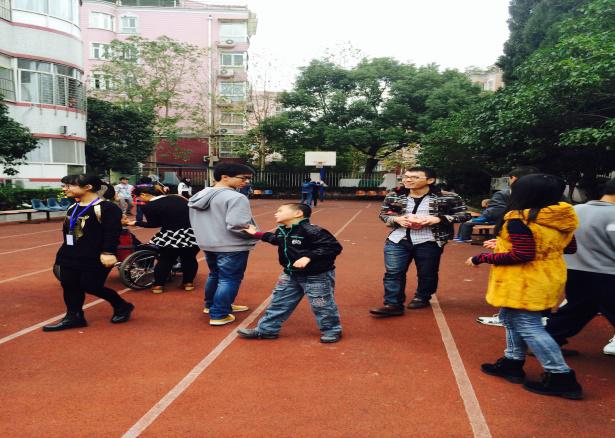 其间,志愿者们陪残疾儿童散步、聊天、打篮球,打羽毛球,也有几名志愿者推着轮椅上行动不方便的残疾人散心,和他们一同唱歌、击掌,尽我们所能为他们的生活带来一些不同。 或许,他们很难用言语表达自己的感情,但是,看到孩子们脸上的笑容,我们便知道此行是有意义的。 过了一段时间,孩子们玩得累了,天又下起了小雨,志愿者们将他们送回房间,给他们留下一些零食,与孩子们告别之后,本次活动也即将告于段落。