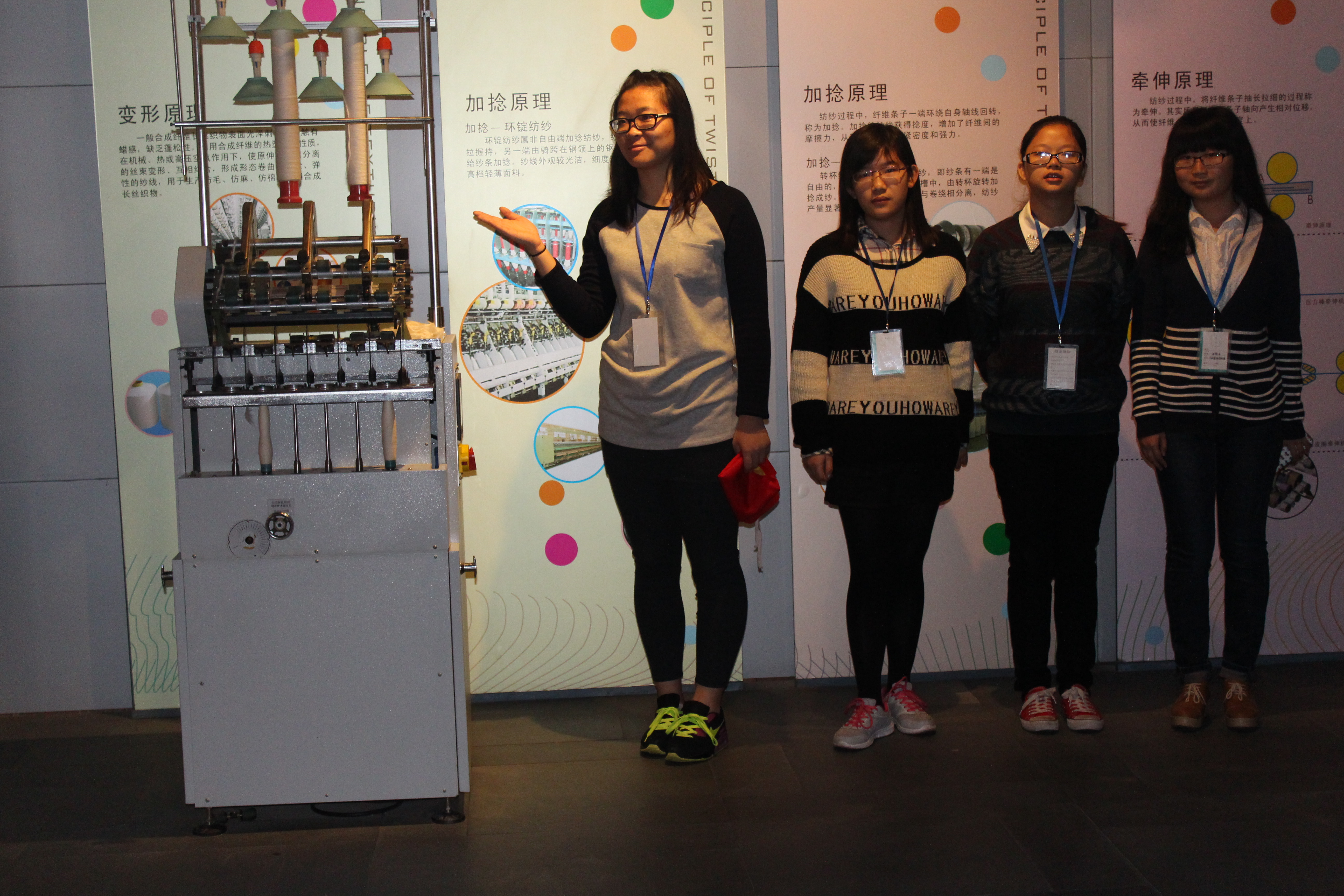 11月25日上午9点,东华大学志愿者管理中心(以下简称管院志管)的3名志愿者陆续来到了上海纺织博物馆,担任馆内的志愿讲解员,为人们讲解当代纺织技术的发展过程。