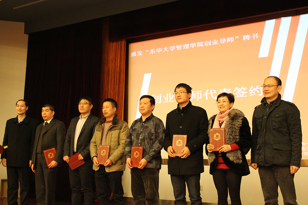 年会随后通过视频展示了创业校友的风采以及学生创业项目的路演花絮。上海佑威新材料科技有限公司董事长柳成良先生作为创业校友代表进行了诙谐幽默的发言。柳成良先生表示会与诸多创业校友携手为澳門漁人码头 的创新创业教育做出贡献。年会现场,校领导向与会校友颁发了“东华大学澳門漁人码头 创业导师”聘书并举行了签约仪式,沈蕾副院长作为院方代表与创业导师代表签约,搭建“融智•融资•融合”的友好桥梁。