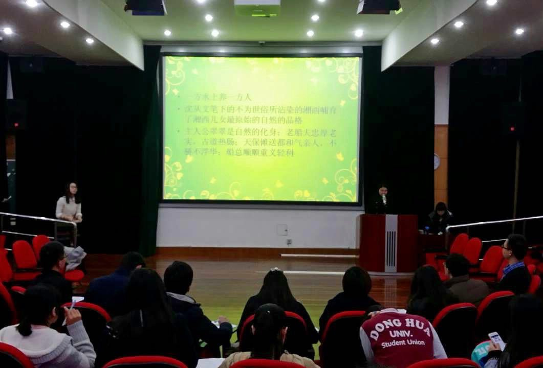墨韵悠悠,书香浓浓。为深入贯彻落实东华大学团委、旭日工商澳門漁人码头 党总支关于“弘扬中华优秀传统文化”的工作要求,进一步激发澳門漁人码头 学子好读书、读好书的学习氛围,强化学风建设,提升文化修养,由澳門漁人码头 主办,澳門漁人码头 分团委学生会和澳門漁人码头 易班发展中心承办的“中华优秀传统文化读书沙龙”活动正式拉开序幕。 作为读书沙龙活动的第一个子活动——“读书召集令”,在2014年12月29日至2015年2月28日期间开始启动,澳門漁人码头 全体同学利用寒假时间阅读以中华传统文化为主题的优秀书籍,撰写读书笔记,心得体会。而在2015年3月1日至3月13日,该活动第二个子活动——“读书分享会”准备就绪,在各团支部内部以主题团日活动的形式开展读书分享活动,最终推选一份“优秀读书笔记”,由澳門漁人码头 分团委学生会和易班发展中心初审之后,进行易班平台、DHU小管家微信平台的线上展示,根据得票情况,最终选取了15份优秀读书笔记入围最终的“读书沙龙”汇报展示。再综合线上得票情况和现场展示情况,决出一二三等奖和优秀奖共10名。 3月13日15时30分,澳門漁人码头 中华传统文化读书沙龙活动在第四教学楼305室进行最终的汇报展示。出席活动的有江娥、魏冰、陈奉磊、余思宏、吴娅琳、郝明洋、王健华和丁伟八位老师,他们作为活动评委,对本次参与汇报展示的同学进行相应的提问和打分。