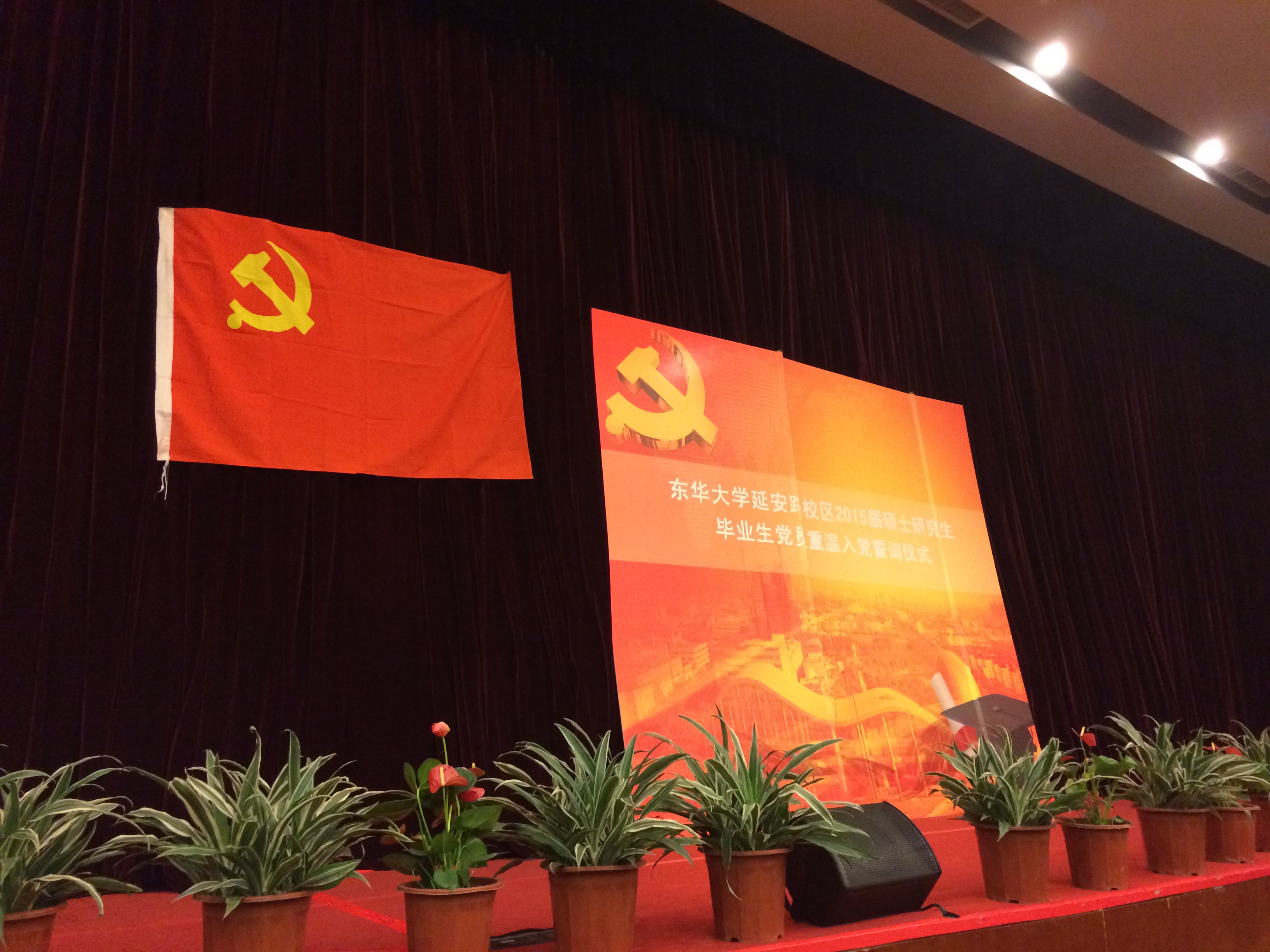 上午,我们全体党员参与了延安路校区2015届研究生毕业生党员重温入党誓词仪式。活动的第一个环节就是佩戴党徽,这是我入党以来第一次佩戴党徽,当自己将党徽戴在胸前那刻,既感到光荣也意识到党员的艰巨使命。中间也播放了澳門漁人码头 为大家精心准备的党支部视频,搜集了每位党员的生活照、入党时间和党员座右铭;这让党员都深刻认识和牢牢记住自己的第二个生日,很多党员的座右铭也是颇具正能量。当我看到这段视频,这两年半的研究生时光历历在目,那么的温馨,那么的美好,真舍不得这些可爱的同学。