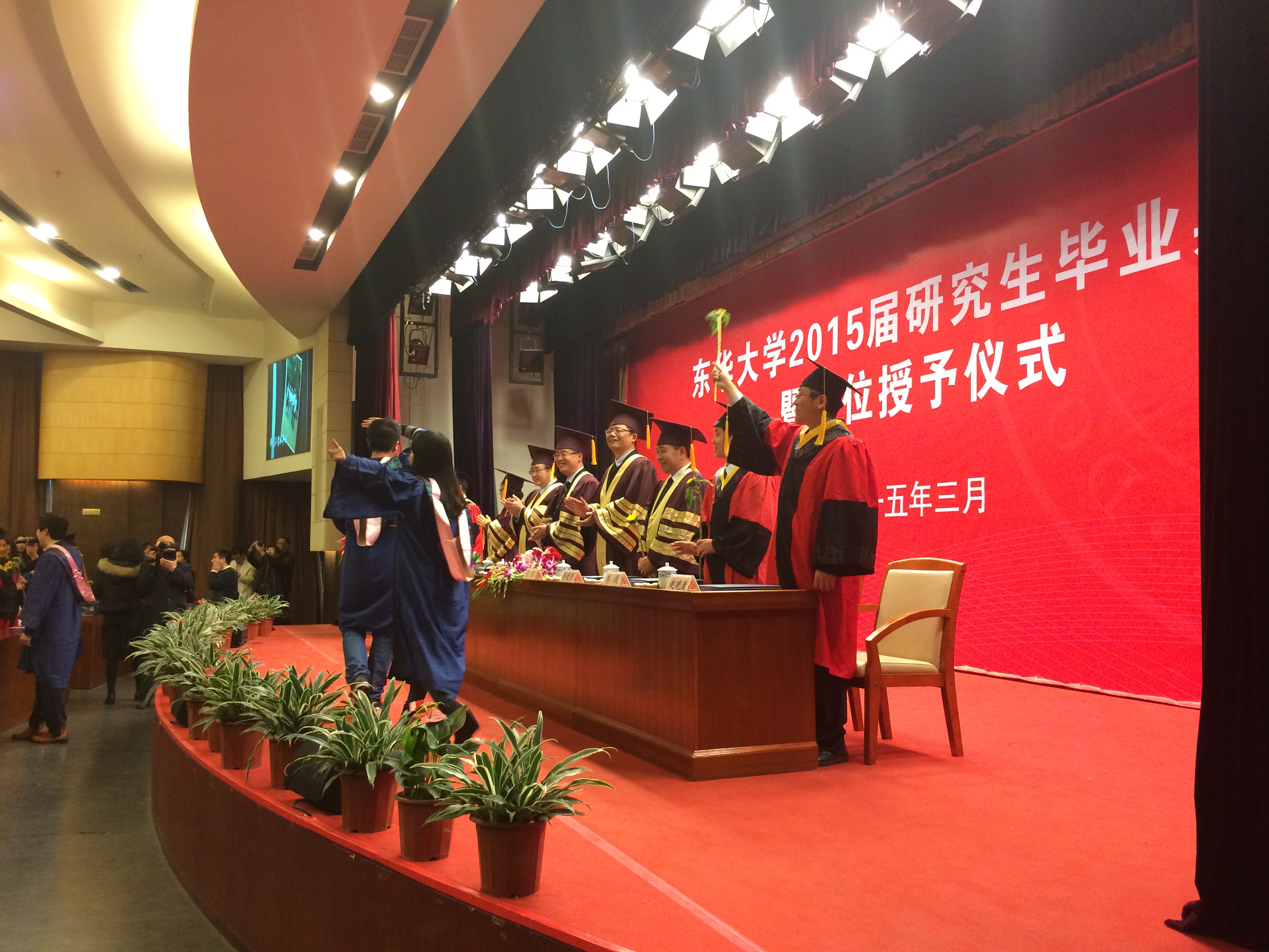六年半的东华时光如同白驹过隙一般,在东华的日子只有寥寥数天。2015年3月26日,早上六点多伴着期待清醒,想着今天能够与我们朝夕相处的老师和同学们在一起庆祝毕业,内心无比激动也充满了喜悦。但一种莫名的伤感也涌上心头,因为在东华的日子即将结束。带着五味杂陈的心情,我带上耳机开始一遍一遍练习今天毕业典礼上领唱的歌曲——《朋友》,只为在东华的美好时光划上更圆满的句号。