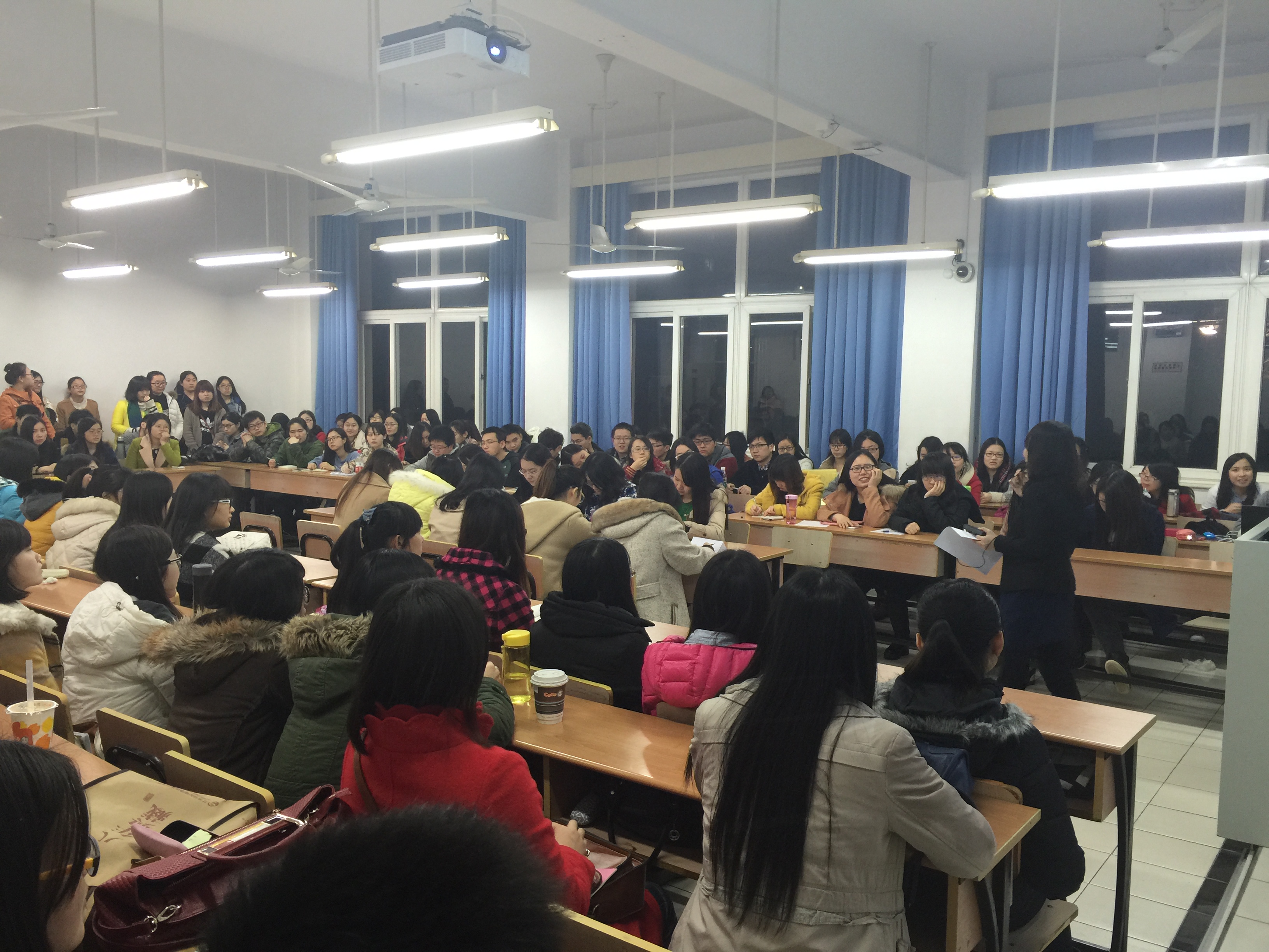 3月20日,邀请某四大会计师事务所的HR Jackie老师带领无领导无领导小组讨论的模拟面试,活动在4教110教室举行,时间还未到,教室里已经座无虚席。除了二年级学生,研究生也有很多到场学习。Jackie做指导老师,她为大家还原了会计事务所真实的面试环境,同时分享了大家关心的问题(证书、网申、面试、用人标准等)。