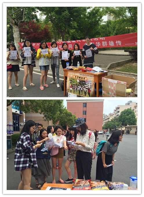 5月17日下午1点,8个参赛队伍准时到指定地点集合,队员们穿着整齐划一的服装,大声喊出自己队伍的口号,每位队员都蓄势待发,带出发的命令一发出,所有队伍迅速奔向游戏地点!每组队伍都需要进行随机抽签,决定他们的寻找圣水任务路线。虽然路线不同但是最终的撕名牌大战的任务地只有一个,只有首先到达最终的任务地的三个团队才能决出最后赢家!取得圣水的路线必须完成闯关任务后得到线索进行寻找。每支参赛必须经历“基本功比拼”——指压板上验正身、“内力比拼”——马步神功论定力、“心法比拼”——驾驭无敌风火轮和“阵法比拼”——速度接力看齐心 这四个闯关任务,四个任务分布在东华大学各个地点的闯关环节,只有门派内成员相互合作,共同协助才可以最终完成目标进入“大决战”——撕名牌大战夺圣水。因为有4条路线所以每两支队伍有相同路线,同一关卡两队中最先完成任务或者表现最优异的可以领取指向该路线下一任务地点的理解较为容易的提示卡,另一队只能领取另一张理解较为困难的提示卡。最终,复仇者联盟队、舞读劳组队和魔教队三支队伍进入了终极撕名牌大战。撕名牌环节中,每个队员背后的名牌下面都有一张小名牌,小名牌的内容其中包括可以获得的礼物及圣水,每个门派的成员可以撕掉其他门派成员的名牌。被撕名牌者小名牌上所写的奖品将为撕掉名牌者所有。