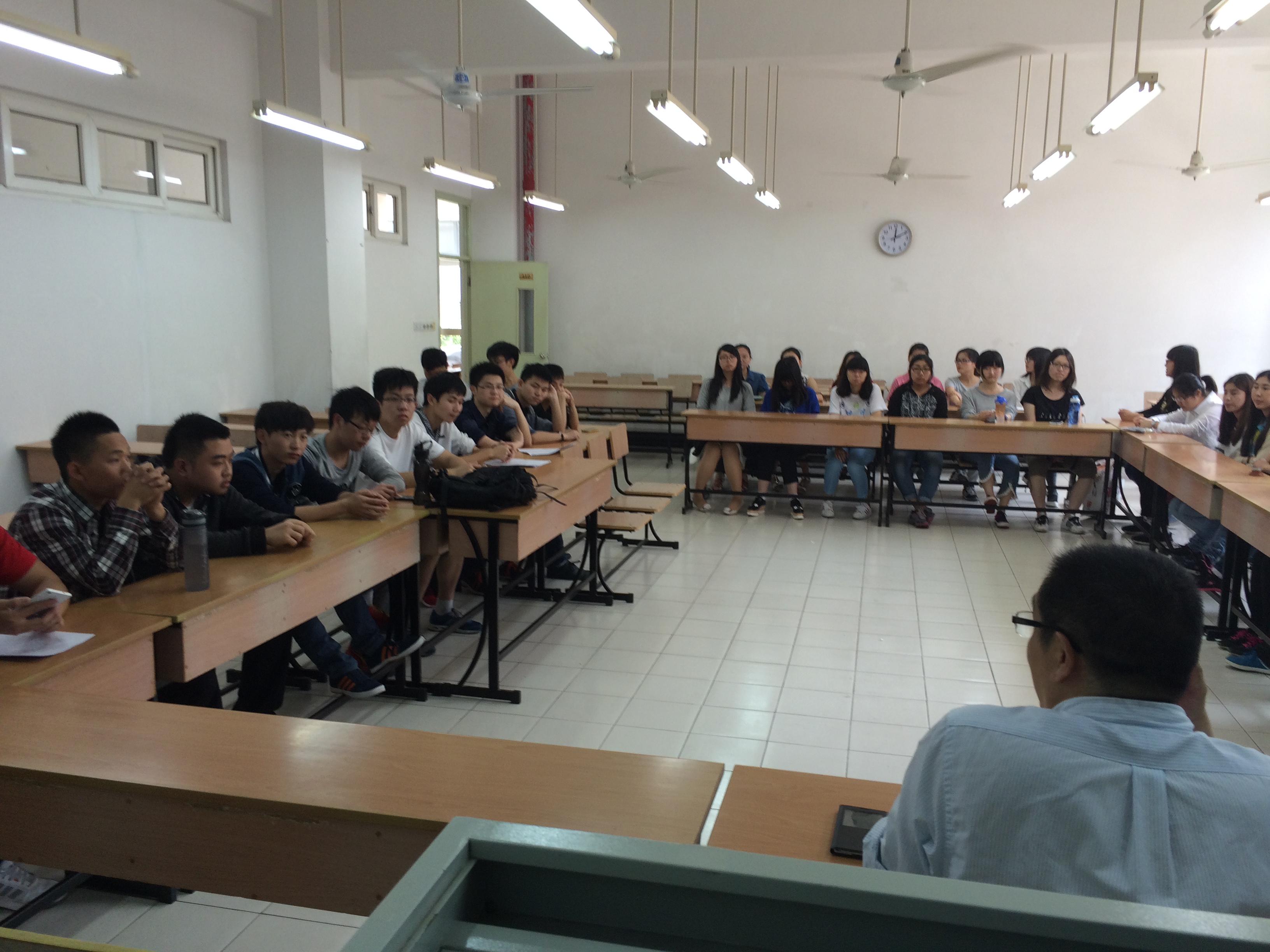 2015年5月19日星期二12点整,在东华大学延安西路校区第四教学楼110教室,14级市场营销专业开展了时长约一小时的专业交流会。我们有幸请到了系主任刘老师,他风趣幽默的口吻、深入浅出的教导给大家留下了深刻印象,受益匪浅。