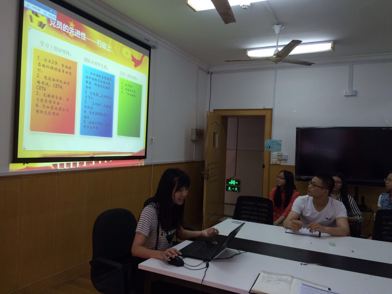 2015年6月15日中午5118会议室,澳門漁人码头 举行第二季度学生入党答辩会,澳門漁人码头 党总支副书记叶晓燕、特邀党建组织员汤仁清、会经学生党支部书记江娥、党建指导老师吴娅琳、经济第一学生党支部书记郝明洋担任评委,经过各学生党支部考核并顺利通过入党理论考试的17位积极分子参加了本次入党答辩。