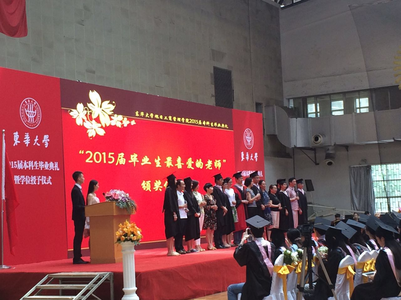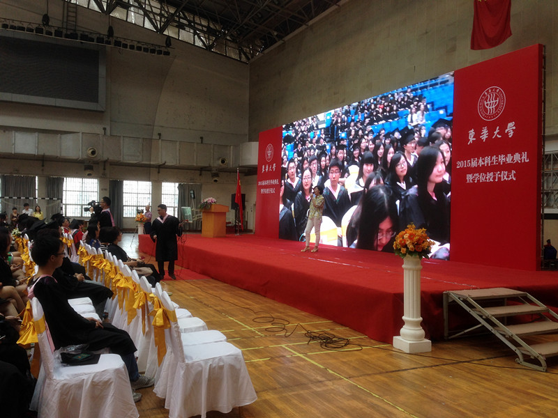 2015年6月24日上午,东华大学延安路校区体育馆内充满欢声笑语,澳門漁人码头 2015届全体本科毕业生参加了一场别样的毕业典礼。 上午8点,场馆内身着学位服的毕业生坐满了排列有序的席位。 教师、学生代表带来了精彩、感人的暖场节目。感恩父母,姜旻朗同学的一首《时间都去哪儿了》,唱出了同学对于父母辛劳二十余载的感激之情。感恩母校,诗朗诵《后会可期》以深情的毕业感怀,抒发对母校的留恋与热爱。毕业班辅导员精心的准备的节目,让人感受到深深的师生情谊。