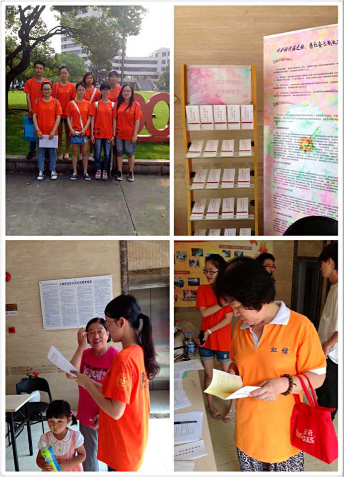 上海方面,团队进驻虹桥社区文化中心开展宣传教育活动。开展前期,队员们将各自学习到的金融诈骗知识有效整合,制作了宣传手册、易拉宝宣传资料和相关调查问卷,为宣传教育的顺利开展做好前期准备。活动当天,部分队员在社区人流密集处发放宣传册,并耐心解答居民们的疑问;另一部分队员在社区文化中心的大厅里向来往居民发放并回收调查问卷。对本次的宣传活动,许多居民表示防金融诈骗的宣传很贴近当下的时代背景,希望更多的大学生能够利用自己的专业知识走进社区,服务社区。