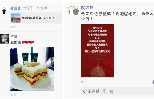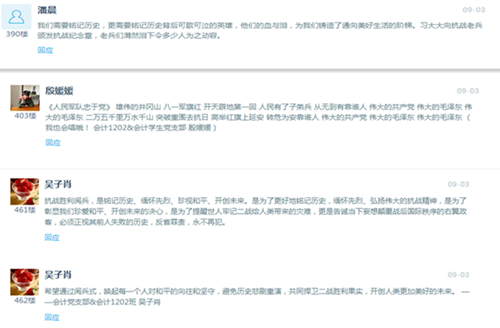 虽然正值暑假期间,但这并不能阻止支部同学积极参加各项活动的热情,支部同学通过多种方式参与到澳門漁人码头 组织的活动中并用文字记录下自己的心得体会,同时在支部内部进行了广泛的沟通交流,使本次活动的教育效果最大化。首先,支部同学认真践行了“三个一”活动,主动阅读了各类书籍,观看了如《百团大战》《太行山上》《大抗战》等影片纪录片,参观了烈士陵园、中国共产党‘一大’会址、《铁血云间:松江抗战记忆》大型图片展等教育基地及展会,并用文字记录下自己的心得体会在支部内部进行了线上交流。其次,在易班公共平台上,支部的同学积极发表评论,参与到与整个澳門漁人码头 老师同学的互动交流中,尤其在9月3日大阅兵这天同学们的热情达到最高峰,发帖评论达到30多人次。同时,支部同学纷纷自发观看阅兵直播,并在微信朋友圈等网络平台发表评论表达由衷的民族自豪感和对历史的追忆沉思。