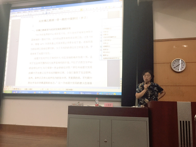 丁霞萍老师以“从丝绸之路到一带一路的中国梦回”为主题开展本次讲座。首先,丁老师从地理位置和历史条件两方面介绍了丝绸之路商贸与经济发展机遇的发现原因。丁老师指出,五百年前世界的中心是亚欧大陆,当时的主要商道是丝绸之路。而地理大发现开创了海权时代,相互连接的海洋形成一体,证明了在全球范围内现代世界里海权的价值。这一次地理大发现的意义不再是丝绸之路而是海洋之路。接着丁老师阐述了一带一路的第二次地理大发现,介绍了我国一带一路构想的历史意义和历史背景。丁老师提到,我国一带一路构想的最伟大意义在于它又将地球翻转了过来。进入21世纪的美式全球化体系正趋于瓦解和崩塌,而中国正在成为21世纪全球化的主要引领者,世界体系的陀螺仪正在转向中国。而后,丁老师结合国际形势,就欧美国家究竟选择重返亚太合作还是对抗亚太地区表达了自己的看法。丁老师认为,欧洲与美国重返亚太地区的原因是不同的。与美国的对抗策略相比,欧洲的合作策略更符合经济全球化时代的发展潮流。最后,丁老师介绍了一带一路的危机预警和风险管理。丁老师指出,当下的世界经济正在聚焦中、印、美三国,中国要走出去,印度要引进来,美国要将制造业赶回去,一场激烈的角逐正在它们之间展开。