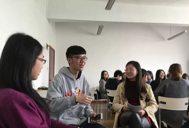 为了调动同学们的积极性,提高参与度,王老师精心策划了两个热身小游戏,动静结合,乐知乐道。游戏以6至7人小组为单位,小组成员推举最为信任的同学成为队长。第一个环节目的是让同学们了解自己的优点,大声说出来,提高自信心。“你真棒,棒棒棒…”的声音此起彼伏,小组成员间仿佛多了一些亲切,多了一些信任,少了一些犹疑,少了一些扭捏和顾虑。同学完成任务后,由各组代表发言展示自己。其中,王老师着重表扬了杨丹宁同学善于倾听的优点,并举例给我们分享了她自己在参与企业面试过程的两点体会:我们要懂得倾听,知道别人想要表达的深层内容;做好自己,不用刻意扮演角色,认识自己,把优势发挥到最好。