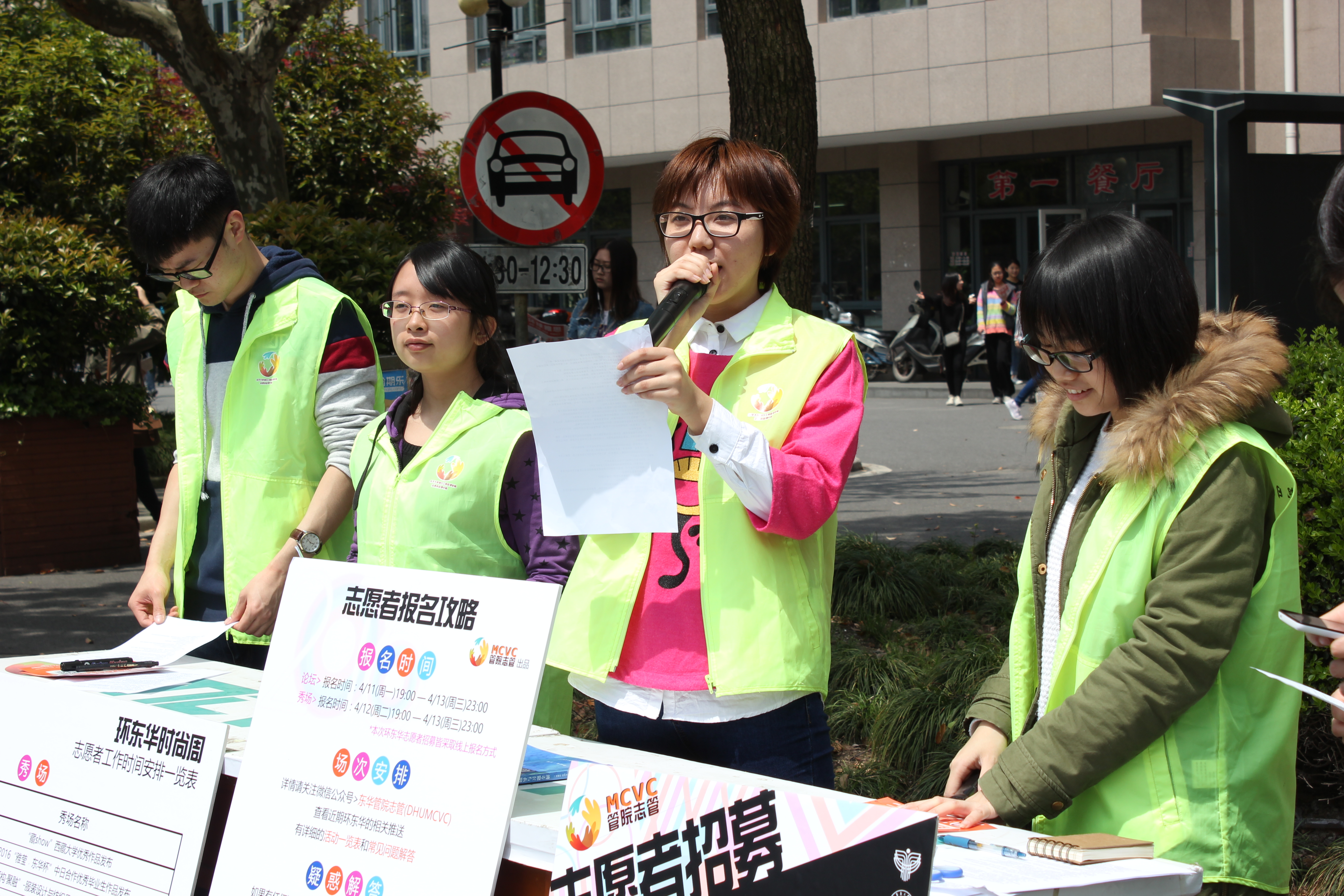 伴随着一年一度的盛事——“环东华时尚周”的临近,时尚周志愿者的招募活动也如火如荼地进行着。本周(4月11-15日)每天中午,旭日工商澳門漁人码头 志愿者管理中心(含管院阳光服务队)都在二食堂门口摆摊,面向整个校区进行志愿者招募。