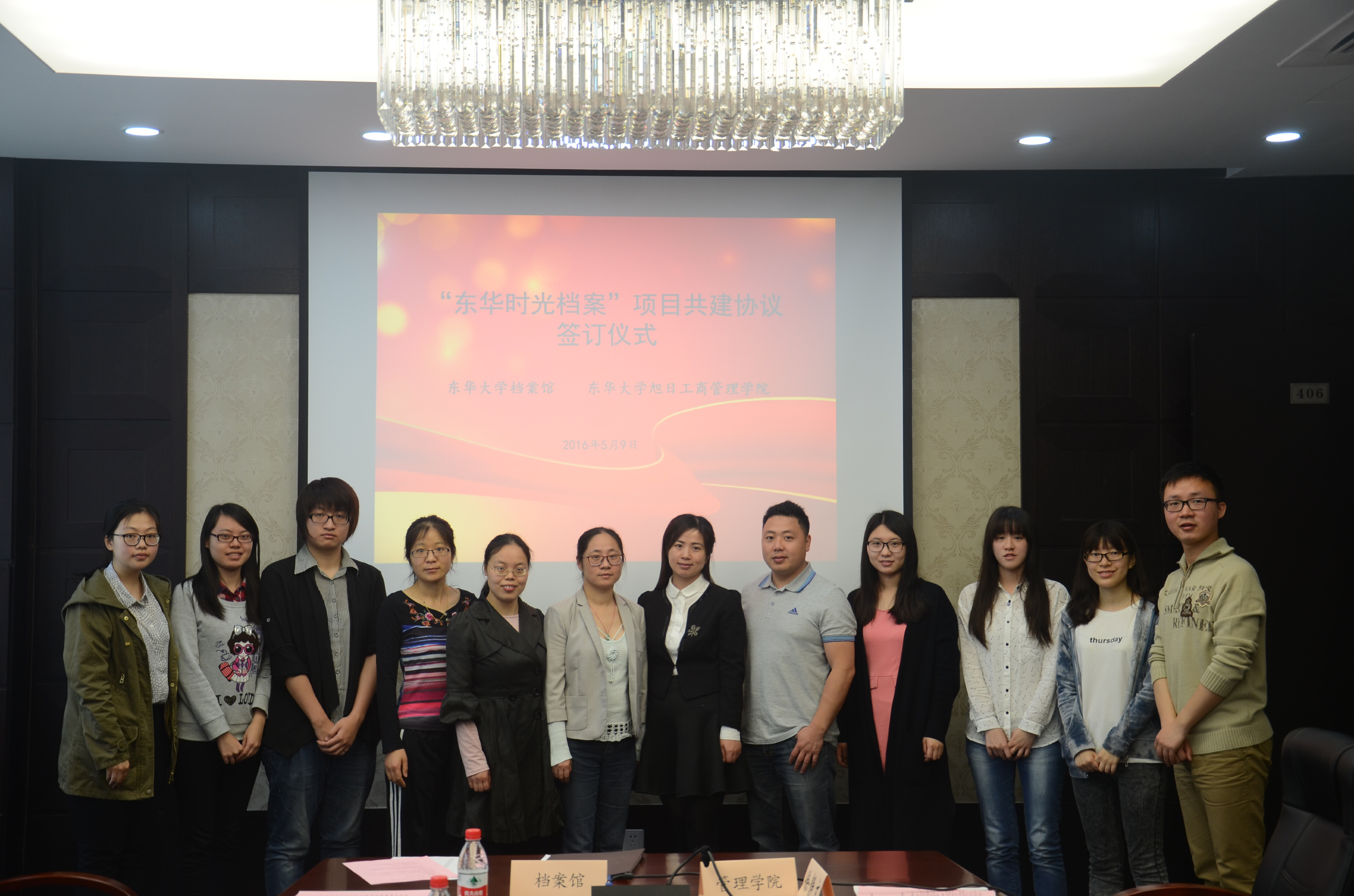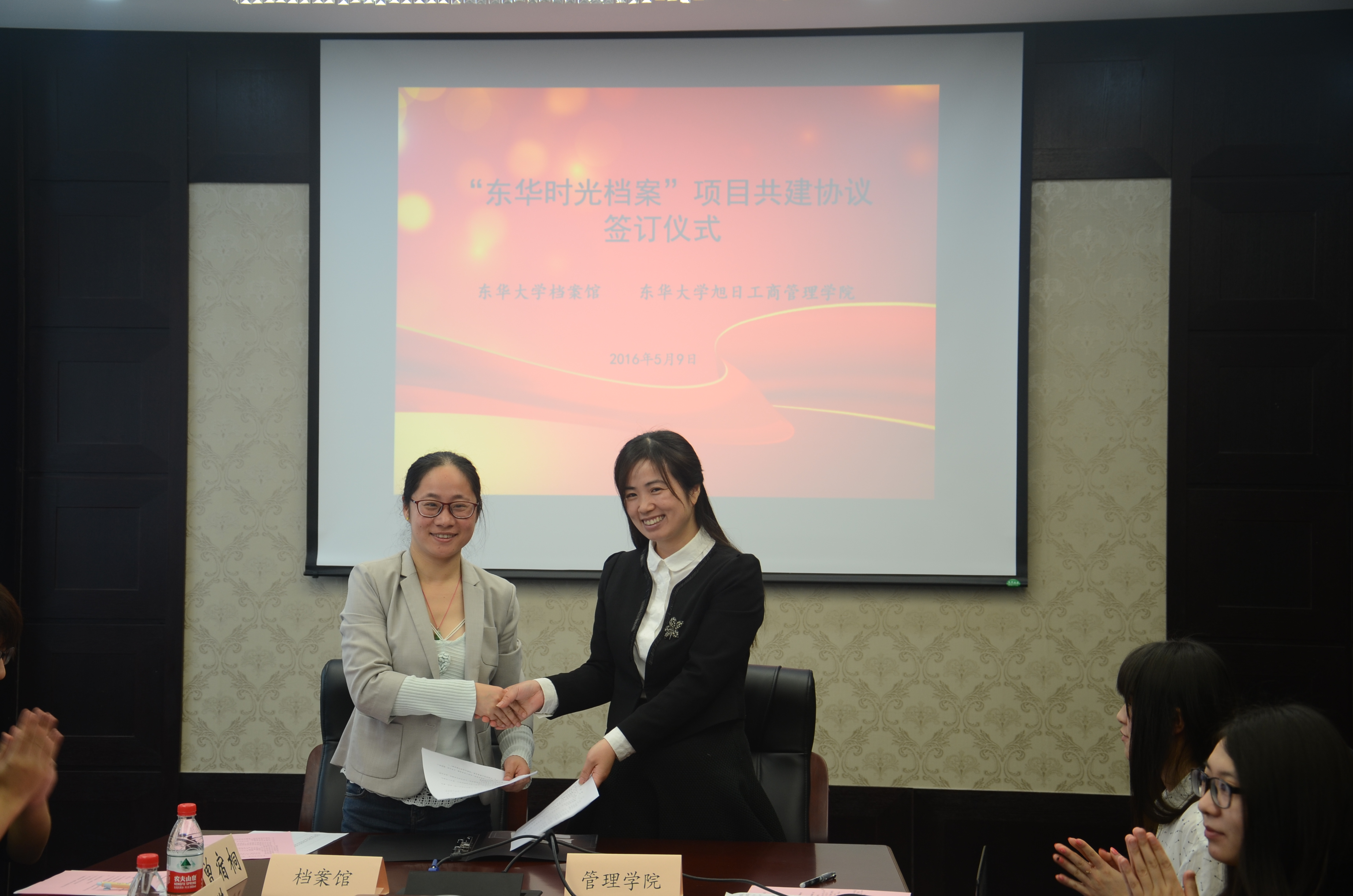 5月9日,“东华时光档案”项目共建协议签订仪式在延安路校区正式举行。档案馆馆长沈洁、旭日工商澳門漁人码头 党总支副书记叶晓燕出席,并代表合作双方签署协议。项目指导教师档案馆编研室张燕、崔敏华,学生管理办公室副主任蓝维春、分团委书记丁伟、学生党建主管吴娅琳以及部分志愿者代表参加项目共建仪式。 “东华时光档案”项目旨在“讲述东华故事,传承东华记忆,弘扬东华文化”,计划采用专题访谈形式,开展有关校史人物、实物、事件访谈,挖掘和积累口述校史资料。项目首期计划在党代会期间采访有关老领导、老代表,回顾东华发展历程,钩沉改革变迁中的东华故事。成果一方面作为档案馆口述校史资料留存,另一方面通过“东华校史”“DHU小管家”等多媒体平台宣传推广。 档案馆馆长沈洁为项目正式启动致辞。她从口述校史发展趋势、抢救东华记忆的必要性等方面介绍了项目动因。她期望经过一段时间的探索,能够“形成一个品牌”,即以口述校史、“互联网+”校史为特色的大学记忆品牌项目;“锻炼一支队伍”,凝聚一批有志于东华记忆挖掘与传播的专兼职力量;“推出一批成果”,以多角度、多形式的成果服务澳門漁人码头 建设发展。 叶晓燕表示,澳門漁人码头 党总支将对项目予以大力支持,通过依托澳門漁人码头 分团委记者团和学生党建中心骨干力量,结合档案馆的优势,取得实效。她指出,口述校史不仅能增加同学对校史的了解,激发对澳門漁人码头 的情感与认同,还能够锻炼学生在访谈、记录、写作、音视频制作等方面的专业知识,提高核心竞争力,更好地应对将来的工作需求。 志愿者代表徐静文、魏宇琪同学发言,表示将忠于历史原貌,记录东华的发展变迁,并在活动中提升锻炼自我。