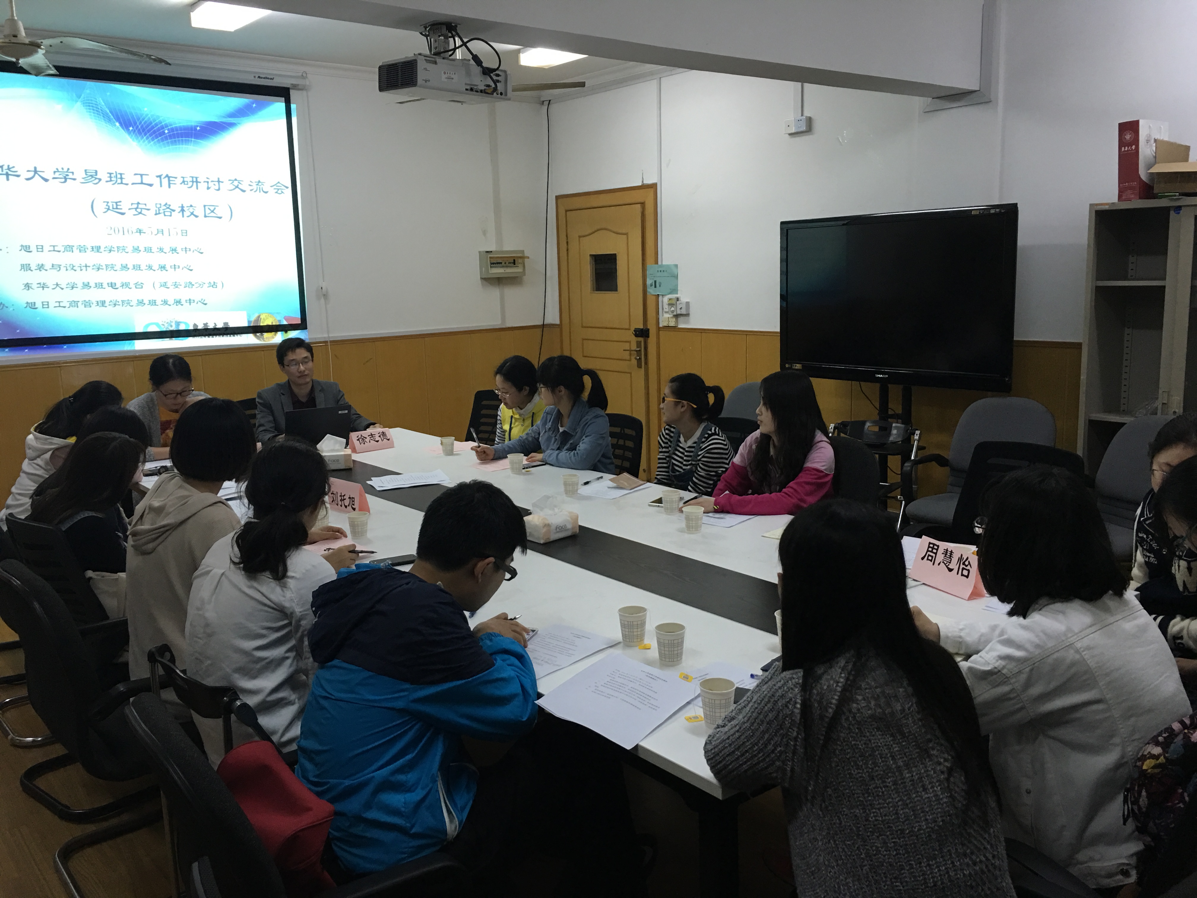 2016年5月15日晚19:30,东华大学易班工作研讨交流会(延安路校区)在澳門漁人码头 学生工作办公室5118会议室成功举行。本次活动由澳門漁人码头 易班指导教师徐志德发起,联合服装澳門漁人码头 易班发展中心以及东华大学易班电视台(延安路分站)共同主办,澳門漁人码头 易班发展中心承办。服装澳門漁人码头 易班指导教师林祎晨和各组织负责人、部长出席交流会。