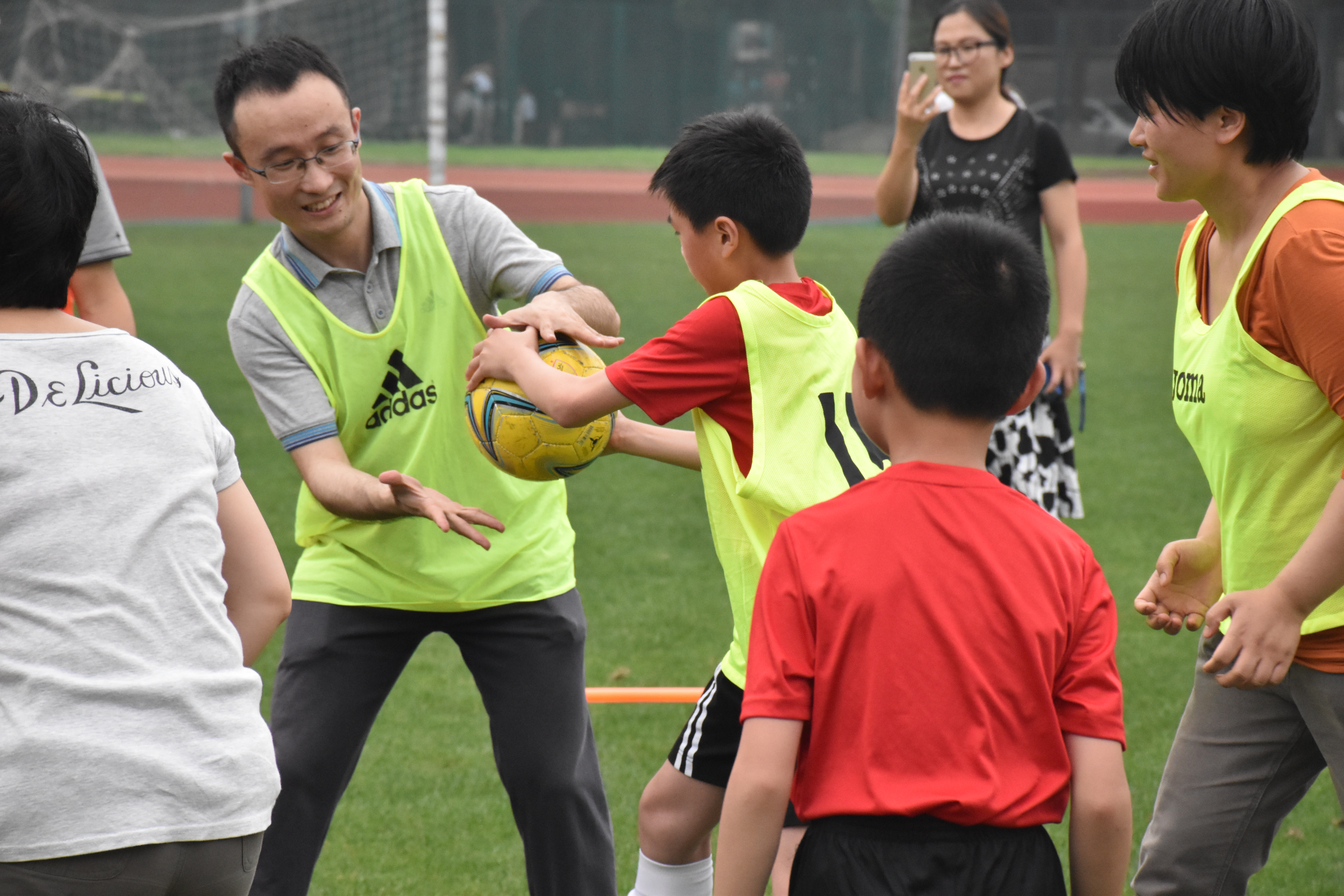 此次足球亲子活动由2016年东华大学年度人物许阳、东华大学高水平足球队队长张浩担任教练。在教练的引导下,各组家庭分别进行了“热身操”、“团队战抢球”、“多难度射门”等项目,小朋友们都十分积极,场上气氛非常热烈。经过教练的亲身示范和耐心讲解,小朋友们对控球、带球有了初步的认识,“球感”也得到了提高。亲子活动以一场友谊赛划上圆满句号,小朋友们你争我抢间,足球小将模样十足,把活动推向了高潮。