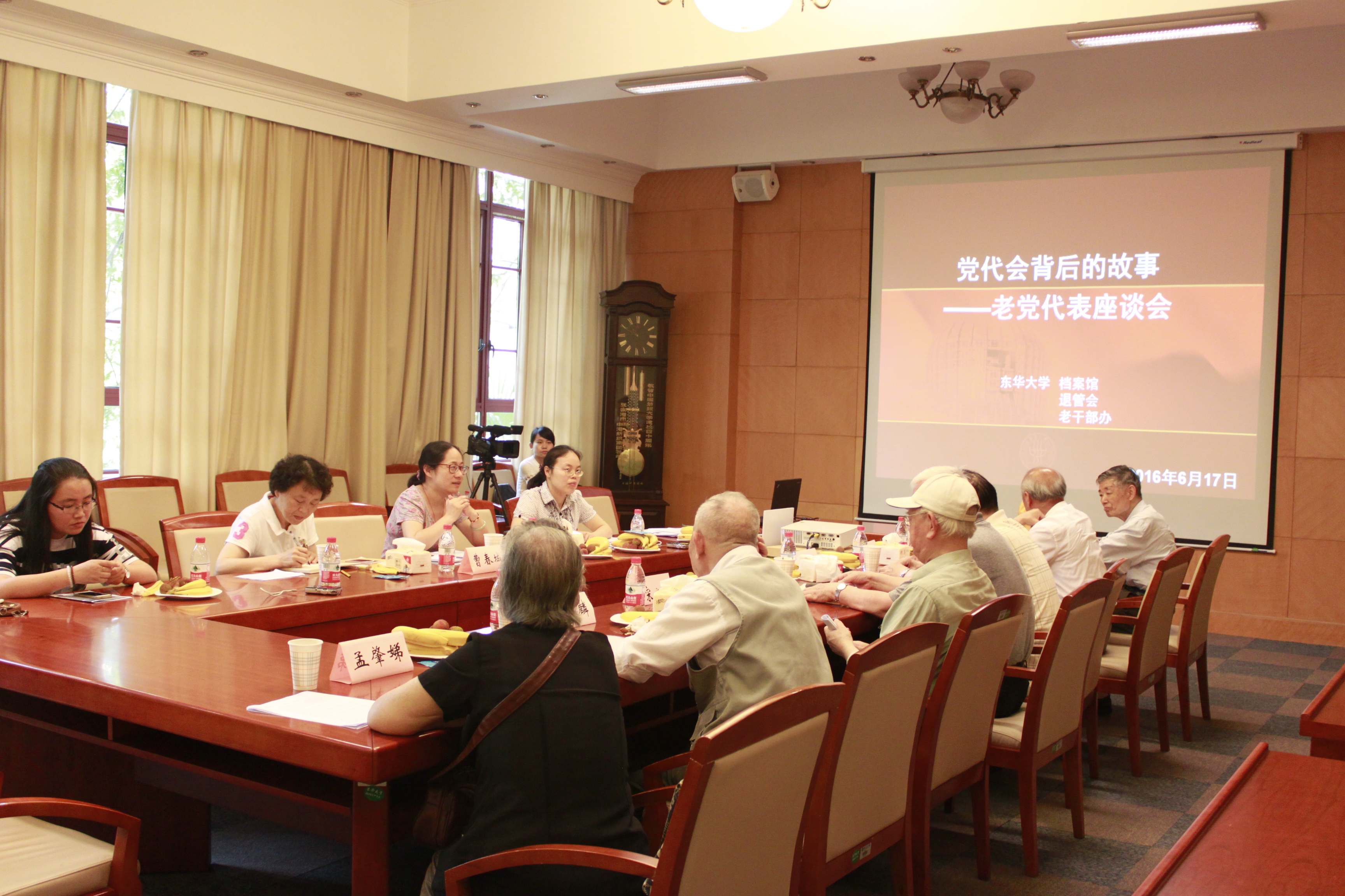 6月17日,“党代会背后的故事——老党代表座谈会”在延安路校区第二会议室召开。座谈会由档案馆馆长沈洁主持,退休党总支书记曹春城到会讲话。退休老代表沈焕明、孙俊康、宋心远、朱辉、周春麟、徐载熊、孟肇娣等参加座谈,结合自身经历,对历届党代会一一回顾,从澳門漁人码头 定位、发展规划、教学、科研、党建等方面阐释党代会对澳門漁人码头 发展的推动作用;同时,以老党员的身份,对澳門漁人码头 工作及当代青年教师党员、学生党员的发展提出寄语与期望。