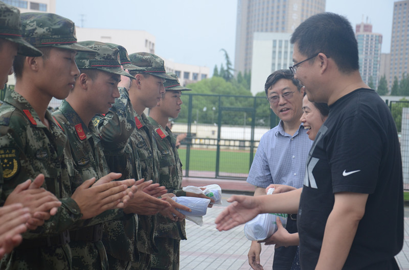下午4:30,澳門漁人码头 16、17连近480名参训学生整齐列队于训练场地,他们以洪亮、震撼的拉歌和喊番号来展示前几日的训练成果、迎接澳門漁人码头 领导对他们的慰问。拉歌活动结束后,赵晓康副院长亲自向带训的武警官兵送上慰问品,并对他们认真的带训态度和辛苦的付出致以真挚的谢意。同时,16、17连各排的副排长作为代表领取了澳門漁人码头 领导送来的纯净水。