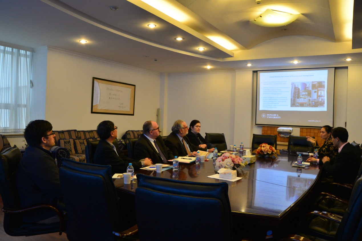 美国蒙莫斯大学代表团来校访问 10月18日,东华大学副校长刘春红教授在延安路校区会见了来访的美国蒙莫斯大学大学副校长乔•斯达夫一行。双方就两校的优势学科,办学特色、及国际合作等议题交换了意见,表达了此次来访作为两校国际合作的良好开端,将为今后双方在管理学科以及信息通讯等领域的学术交流、学科建设等方面进行更广泛、更深入、更长期的合作奠定扎实基础。国际合作处副处长赵明炜老师陪同出席了会议,双方就签署校际合作框架协议和交换生项目交换了意见。