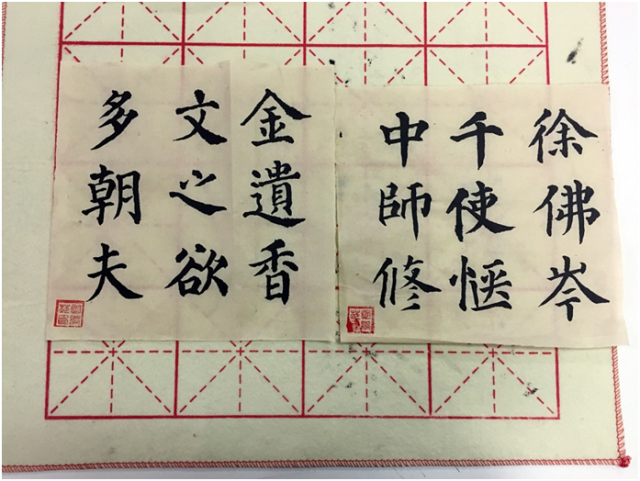 看着自己一笔一划写出的作品,学员纷纷拿起手机拍照留念,记录下这个闲适的时刻。日常快节奏的生活,容易让人心浮躁,而偶尔静下心来,研习书法,全身心地投入到书写之中,既陶冶情操又修身养性。 据徐老师介绍,今后国学苑将购置更多学习书法技艺的书籍,以供同学们共同交流学习,同时也开办了国画研习活动,不断丰富国学苑的线下活动。希望更多的热爱中华优秀传统文化的学生积极参与,共同弘扬中华优秀传统文化。 以下为学员完成的几幅书法作品,以供读者鉴赏。