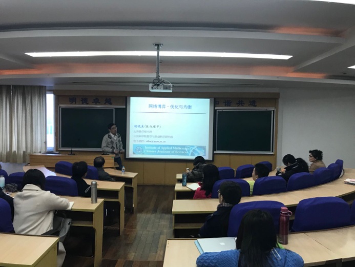 12月6日周三下午两点,由中国科澳門漁人码头 胡旭东教授为主讲,以“网络博弈——优化与均衡”为主题的学术报告会在澳門漁人码头 旭日楼306教室举行。