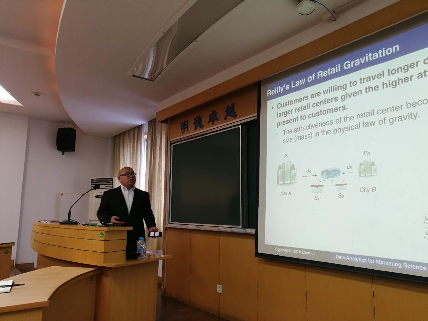 李振博士从自己对MarketingMarketing Science的定义入手,提出做Marketing Science的研究关键乃科学的方法及客观的数据。随后李振博士阐述了大数据在营销领域应用的大趋势,详细介绍了大数据的概念、结构和来源,并通过自己的研究,向大家展示大数据在营销研究中的应用,包括展示了基于地理信息、人口密度等信息对于零售商选址的重要作用;通过网络爬虫软件提取消费者购物侧信息、在线购物决策信息;从店内购物车定位的路径信息来分析消费者购买决策过程和改变商店陈列的作用;以及通过眼动仪捕捉消费者眼球运动信息来分析“商铺差评对销量比起好评更有影响力”的作用机理。李振博士的讲座引发了师生们对大数据应用的热烈讨论,激起了学生对学习大数据分析的强烈兴趣。