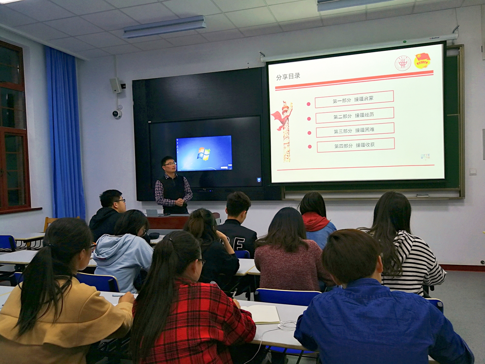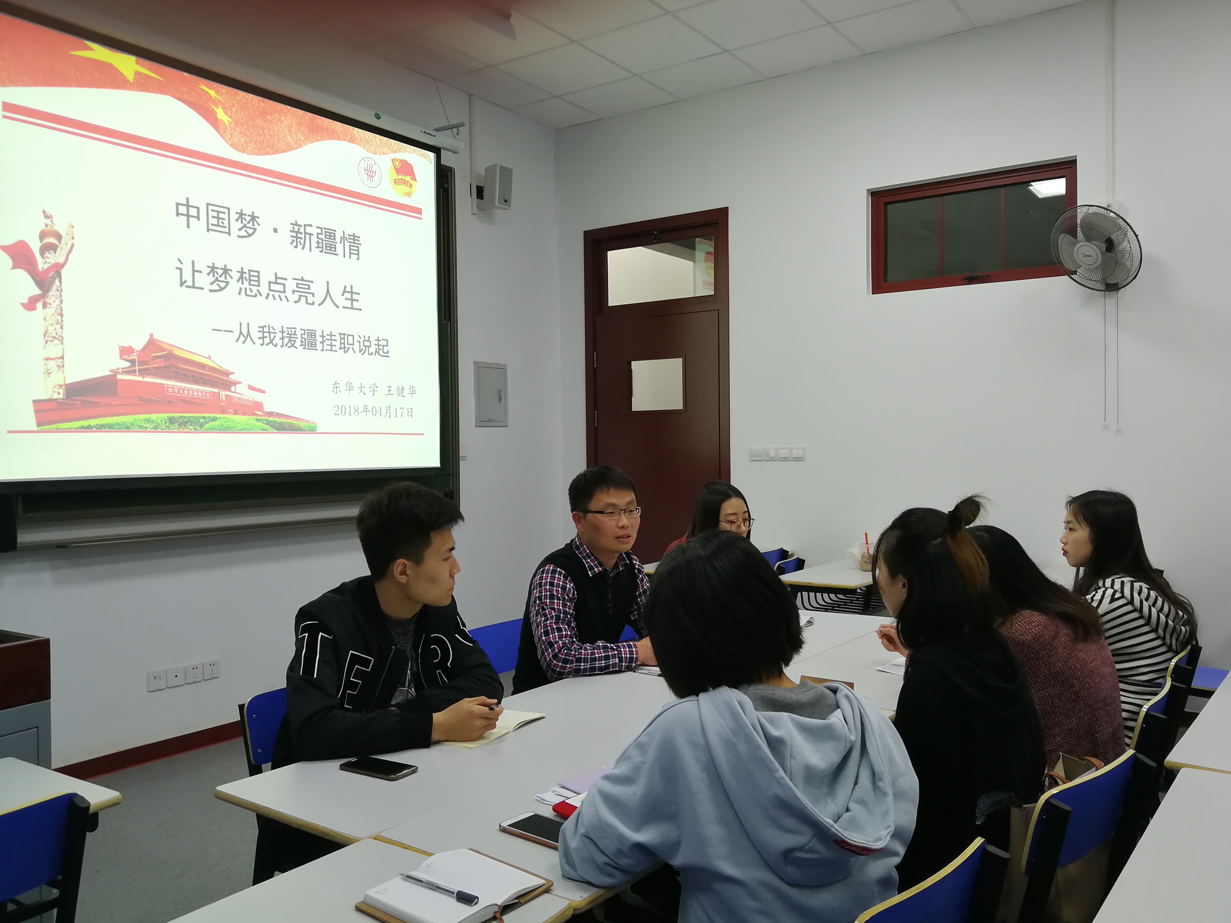 为深入贯彻落实党的十九大精神,积极落实“三会一课”制度,电商物流系学生党支部于4月17日晚在1教210开展党课学习活动。本次党课学习活动由支部书记王健华老师主持,支部党员及入党积极分子共同参与。 王健华老师结合在新疆挂职的亲身经历,分别从援疆启蒙、援疆经历、援疆困难以及援疆收获四个维度展开,让支部党员及入党积极分子更加直观清晰地了解大美新疆、大局新疆、大爱新疆,激发支部同志们的家国情怀,坚定支部同志们的理想信念。 支部书记王健华老师从自己爷爷作为中国人民志愿军抗美援朝的英勇无畏事迹联系自己的援疆初衷。作为高校教育工作者更应该承担起支援西部开发和促进民族团结的责任。王老师从“我为什么要援疆”延伸到“我为什么要入党”,由浅入深,层层剖析,引发大家深入思考。大家均从入党动机、入党态度和入党初心自我剖析,追问自己是否具有明确的入党动机、端正的入党态度以及永恒不变的入党初心。 李守凯同志结合近期工作情况发言,自己作为新时代青年,应始终保持积极努力劲头,希望自己也能为西部发展做贡献,志愿投入西部建设。正在参加发展对象培训班党课学习的陈旭辉同学说,自己始终坚持入党初心不变,以端正的态度认真上好每一节党课,以谦虚的姿态加强学习,争取早日成为优秀的中共党员,在工作与生活中发挥积极作用。 王健华老师通过新疆的行政区域图、舌尖上的新疆、裙摆间的新疆向大家展示了他所了解到的新疆,也让在场的同志们感受到了新疆的幅员辽阔、美味佳肴与异域风情。身为一名援疆的挂职团干部,工作重点、工作模式、工作对象的改变都让王老师遇到了较大的挑战,但梦想与信仰的力量、信念与意志的坚定、无私与无悔的笃定让他鼓足勇气一一迎接挑战,克服重重困难。本次援疆经历让王老师获得了一生的收获,深刻领悟了“十万知青上山下乡援疆报国”般的家国情怀,感受到了领导和同事对自己的厚爱,开阔了自己眼界也提高了自身的素养,使得自己变得更加自信、更加从容淡定。 初心易得,始终难守;始于初心,终于坚守。本次党课学习让电商物流系学生党支部的所有同志在了解新疆的同时也对自己未来的规划进行了思考。作为新时代的青年,要坚守自己的初心,审视自己的定位,明确自己的未来,以积极向上的姿态做引航前行的管院人!
