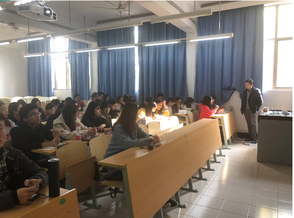 接下来,吴老师从“行”与“艺术”的角度讲述了“游”的意义与影响,“游”作为文化传统,有着返璞归真、功德圆满的内涵,同时也对艺术精神产生了重要影响。他认为庄子逍遥游思想象征着一种自由精神,而无目的的活动催生了无功利性的艺术,也印证了康德所说的“美是一种无目的的快乐”。 在谈到中医中的“病”时,吴老师教授了“丙”字理解的三种层次:第一层理解为其作为声旁,本身无意义,仅做到表音的作用;第二层理解为其本义是装在石器孔洞了的手柄,衍伸出凭证、证据的意思;第三层理解则为在阴阳五行学说中,丙与火有关,火又与心有关,而疾病的根源:怨、恨、恼、怒、烦皆与心有关,生动阐释了“病”字的来源。 随后,吴老师讲述了中国传统文化中的“茶”文化,并结合其字义、字形表明了其象征着天人合一,还从包含“喜寿”、“米寿”、“白寿”和“茶寿”的寿文化中阐述了字形与字义的关系,极为生动形象。 最后,吴老师通过汉字渊源、“衣居合一”、诗意栖居并结合《舌尖上的中国》中的故事来解释了“园”字的内涵。 吴靖老师以一首打油诗巧妙地结束这堂内容丰富的党课:悠悠华夏浪淘沙,德被寻常百姓家;勘破五行方了病,精修三昧始知茶;欲游天外寻明月,归去园中数落花;阅尽诗书心有慧,沧江蜀道觅中华。颔联意在中国文化“走”出去可以依靠中医与茶;颈联象征着中国思想文化中入世与出世的智慧;尾联则代表了知行合一。