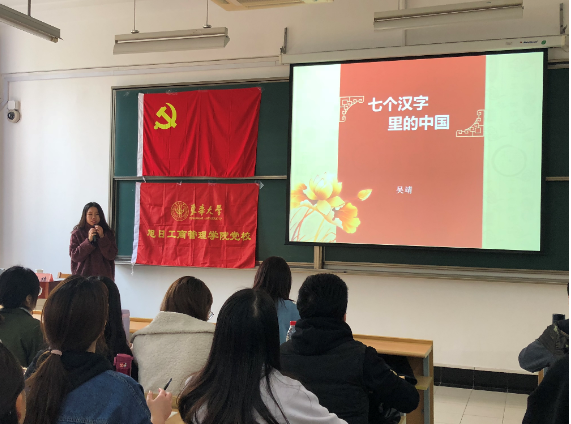 识中国汉字,习传统文化——记东华大学澳門漁人码头 2018年预备党员培训班主题党课 2018年11月27日,澳門漁人码头 党政办公室主任吴靖老师在二教204教室为澳門漁人码头 预备党员带来了一堂以“七个汉字里的中国”为主题的生动的党课。
