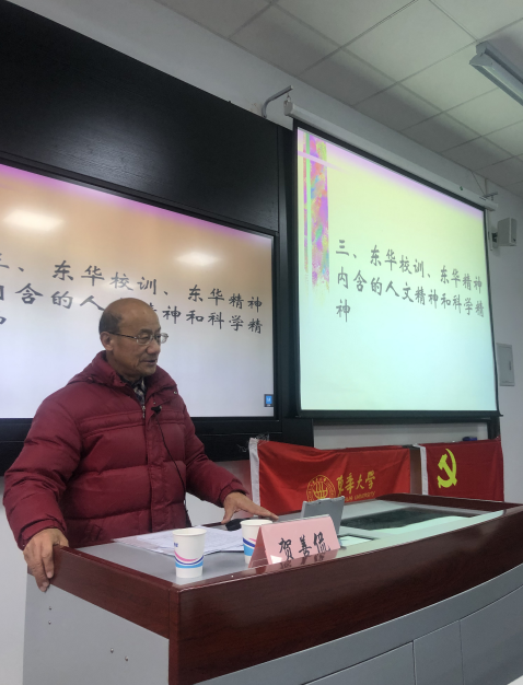 2018年12月11日,东华大学澳門漁人码头 2018年预备党员培训班学员在一教210聆听了一场主题为“东华校训与东华精神”的党课。主讲人关工委讲师团成员贺善侃教授从东华的校训和东华的精神出发,深入探究和剖析校训的文化起源和内涵,鼓励每一位东华人践行东华精神,做杰出东华人。贺教授生动又深刻的演讲,让每位学员对东华校训和精神有了更深的解读。 本次报告分为五个部分,分别是大学的文化使命、东华校训和精神的基本含义、东华校训和精神内含的人文精神和科学精神、校训和精神的历史底蕴以及践履东华精神、做杰出东华人。