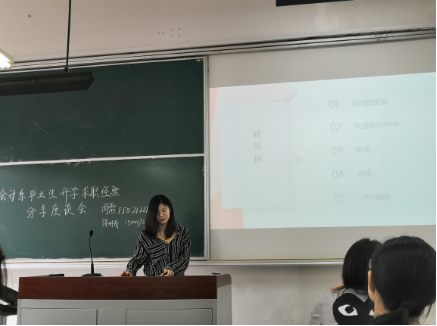 毕业生求职升学经验分享 ----记会计系学生党支部5月座谈会 2019年5月17日下午12点20分,会计系学生党支部在四教110教室召开了以“求职升学”为主题的经验分享座谈会。本次座谈会邀请了会计系党支部即将毕业的6位学姐分别就保研、考研、就业、出国四个方向做了详细的介绍,在座的同学们都收获颇丰。 首先由保研本校会计学硕的张韶卿同学分享她的保研历程。她提到,大家选择读研的原因是多种多样的,明确自己为什么选择保研的原因是非常重要的。之后她详细地讲述了夏令营、预报名、九月推免等保研流程,并结合自身保研和考研两手准备的经历让同学们对保研有了更加清楚全面的认识。