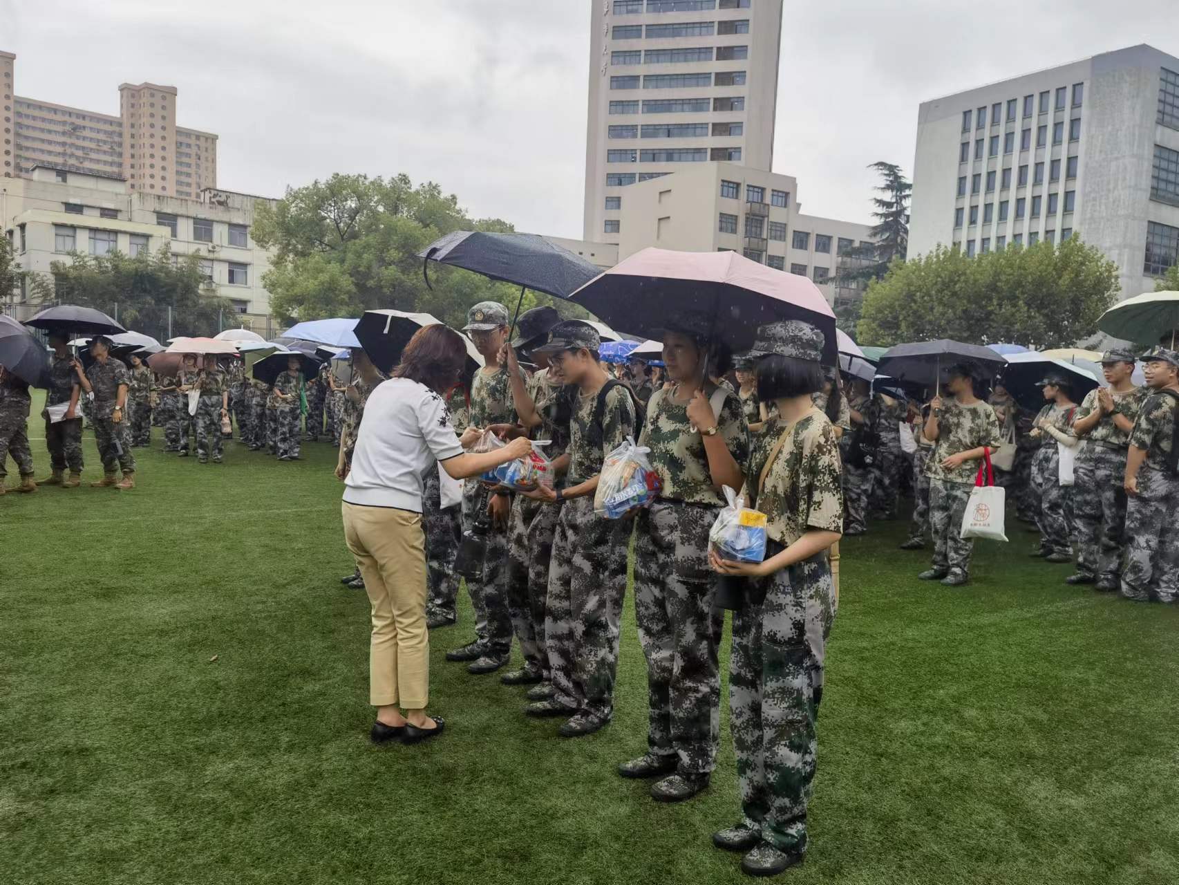 党委书记林嵘为同学们发放慰问物资 恩师慰问暖心田,面向秋日志更坚。在簌簌的秋风声中,旭日工商澳門漁人码头 此次军训慰问活动圆满结束。此次活动,充分体现了领导老师们对旭日工商澳門漁人码头 23级军训教官和新生的真挚关怀,体现了澳門漁人码头 的人文素养,为同学们完成接下来的艰苦军训任务提供了不竭精神动力。“碧华映朱实,攀折青春时”,军训总会落幕,新的征程开启。愿同学们都能带上各位领导老师们的关心与期待,扬帆起航。军训一课,永记心间。酒旗风正少年狂,未来路漫漫,希意志坚定,不忘教诲,数风流人物,还看今朝! 供稿部门:旭日工商澳門漁人码头 军训编辑部 撰稿人:李若辰 翁星宇 |