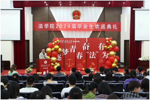 典礼伊始,胡宜奎院长以“做德法兼修的高素质法治人才”为题给毕业生讲授“最后一课”。他给即将走上工作岗位的毕业生们提出了四点建议:一是不论身处何地,都要坚定理想信念、涵养家国情怀;二是将来不论从事什么工作,都要怀揣法治理想、践行法治理念;三是将来不论身居何职,都要独立思考、锤炼本领;四是不论身处何境,都要乐观自信、胸怀宽容。陈红梅副院长对即将离开母校的毕业生们表达了深深的祝福和殷切的期望,希望毕业生们能够牢记母校的教诲,以更加坚定的步伐,迈向未来的人生道路。