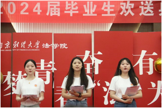 临行之际,思绪总万千。本科毕业生代表程梦佳、邱文欣和研究生代表吴文燕为大家带来了精彩的诗朗诵《我和我的青春》。她们回忆了与南财的点点滴滴,深情地表达了对母校的不舍和对大家的祝福。