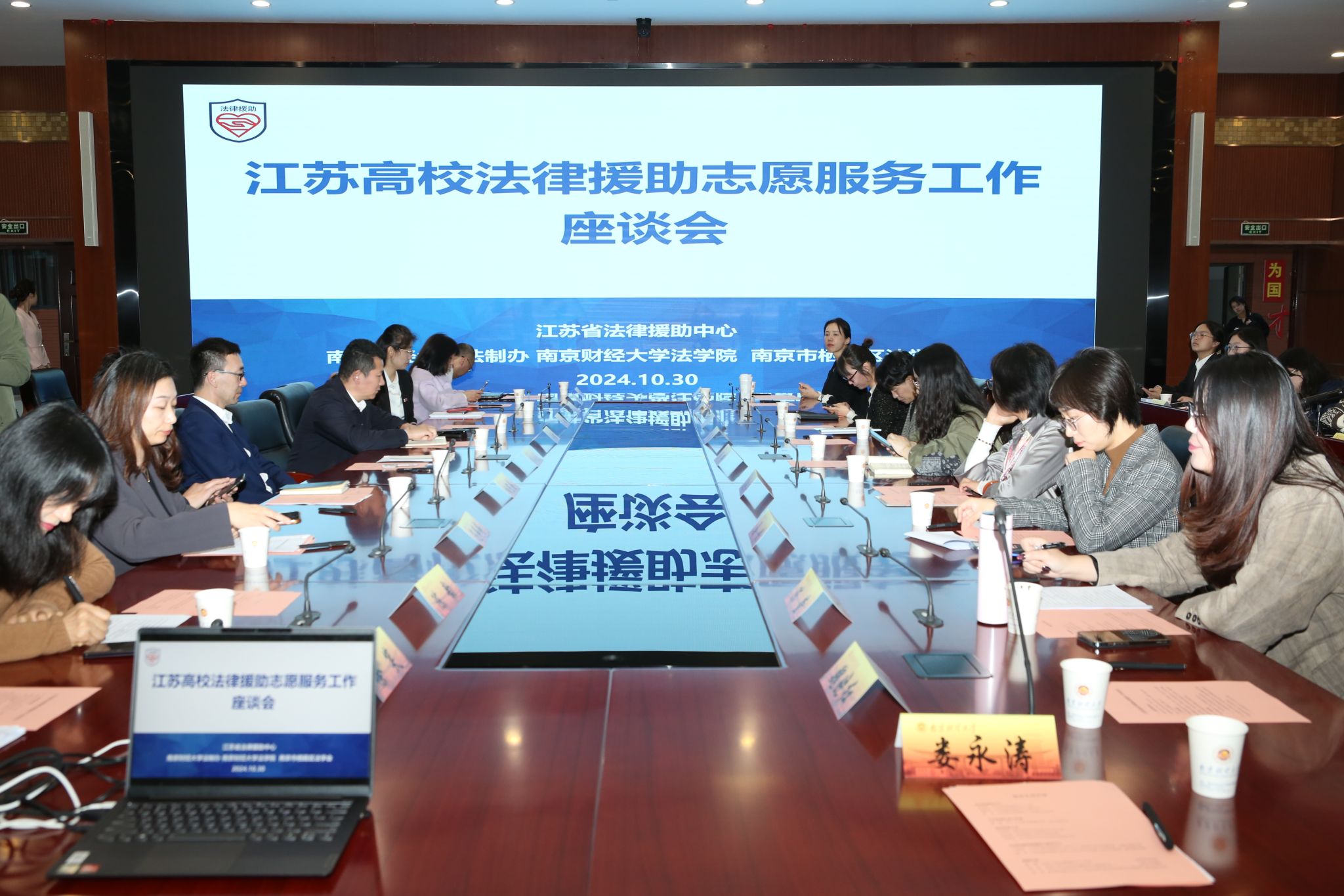 10月30日,由江苏省法律援助中心主办,澳門漁人码头 法制办公室、澳門漁人码头 ,栖霞区法学会共同承办的高校法律援助志愿服务座谈会在仙林校区工科楼二楼召开。江苏省法律援助中心主任李凤友、校法制办主任吴庚祐、澳門漁人码头 院长胡宜奎、澳門漁人码头 党委副书记刘英华、江苏恒爱法律援助与研究中心理事长叶晓辉以及江苏省16家高校法律援助组织代表参加座谈会。座谈会由江苏省司法厅法律援助中心副主任范婷婷主持。