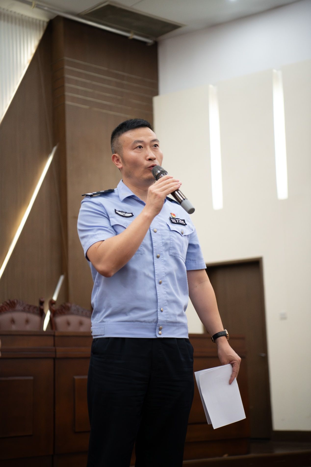 典礼还特邀杰出校友、南京市栖霞区马群派出所副所长曹杰重返母校。他结合从警生涯中的法治实践案例,生动讲述了法律在现实中的应用,并贴心送上防诈指南,提醒新生警惕校园常见诈骗,珍惜大学时光,筑牢安全意识。