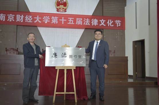 丁书俊主任与王佩校友共同为“廉洁图书室”揭牌