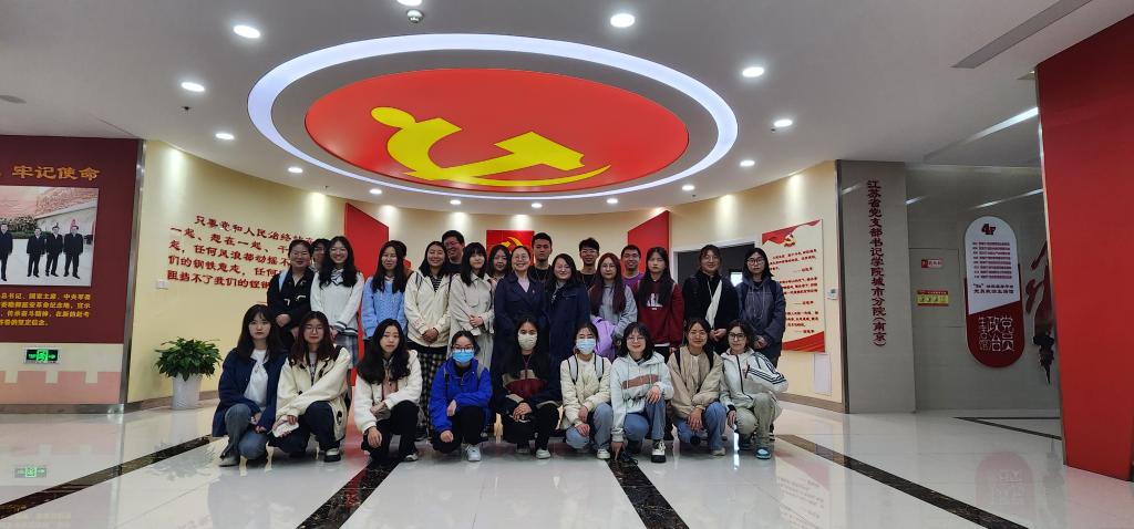 在参访中,社工系师生主要参观仙林街道党员政治生活馆和仙林街道社会工作服务站。在党员政治生活馆的参访过程中,身着黄色马甲的讲解员全面介绍“党誓厅”“党史厅”“党示厅”“党视厅”“党事厅”“党建厅”“党群厅”“党教厅”八个核心功能区,为社工系师生提供了全景式党员学习教育体验。其中,讲解员特别强调了仙林街道“网格化”党建引领城市基层治理和服务群众取得的丰硕成果。仙林街道创新“网格化”党建模式,被誉为“新时代城市版‘枫桥经验’”,先后荣获全国先进基层党组织等国家级荣誉。在八大功能厅详细的党群事迹宣传和工作人员的详细讲解下,社工系师生对于“网格化”基层党建等先进理念和党群工作落实有了更深刻和具体的认识。