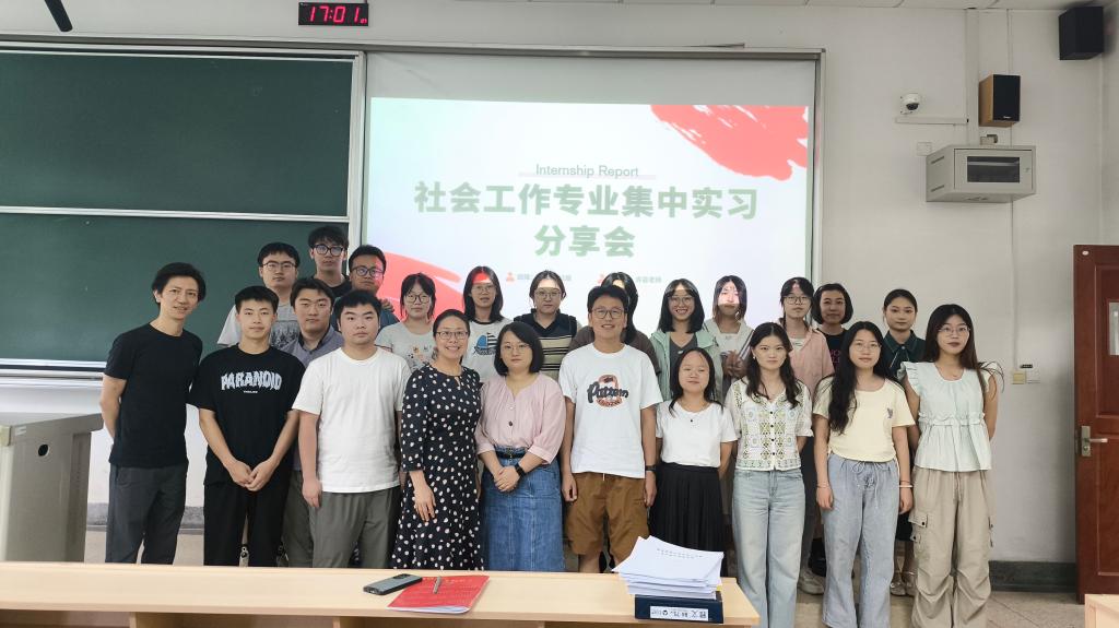 同学们以实践小组为单位依次进行分享。同学们不仅详细分享了在专业实践过程中的服务内容、典型案例,也反思了专业实践中存在的困境和不足,并对未来学习作了非常好的展望。谭博文在益童基金会实习后表示:“这次集中实践,是我走向社会的非常真实的体验,我发现工作岗位中一定要严谨、认真,不能有马虎和拖延,这对我接下来的学习和未来的工作都非常有帮助。”李丹阳表示:“在这次实践中,我接触到了不少困境家庭,让我真切感受到了社会中的弱势群体,社工真的需要评估他们的需求,并开展切实有效的行动。社会工作真的非常需要,更坚定了我从事社会工作的决心。”