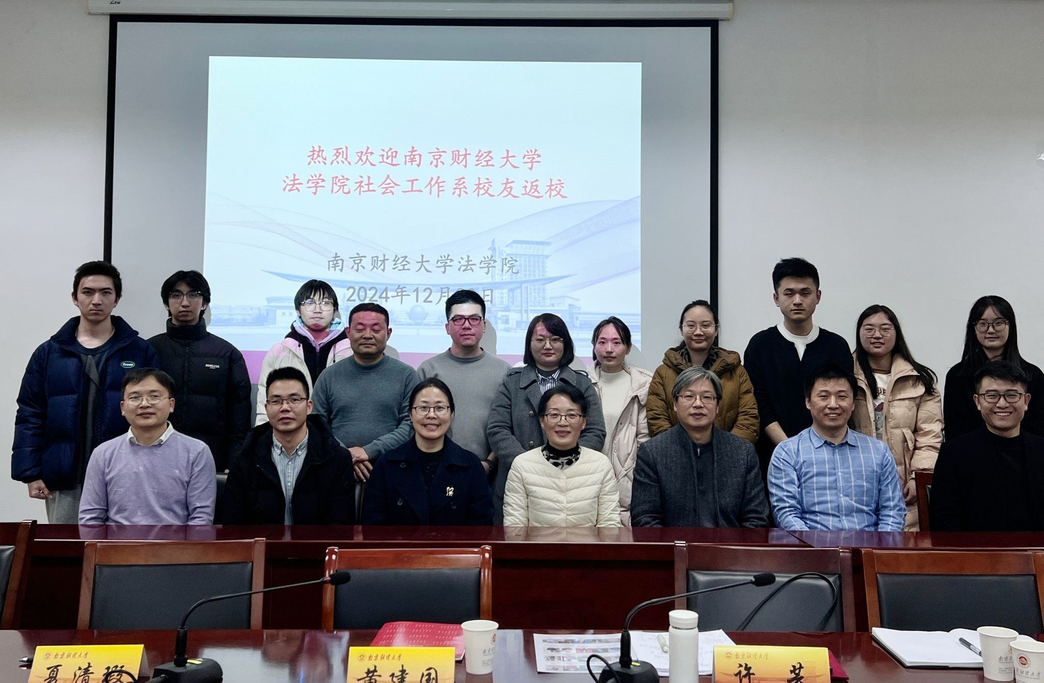 首先,许芸主任对前来的四位优秀社工校友分别进行了介绍。他们分别是2006届校友姚进忠,现为集美大学文澳門漁人码头 院长、教授,曾为南财录制“我为南财代言”招生宣传视频并推荐社工专业,参加了第一次“南财新锐社工圆桌会”和多次会议;2007届校友冯元,现为湖南师范大学社工系讲师,全国高级社会工作师;2007届校友岳耀蒙,南京市栖霞区启蒙社区发展中心理事长,高级社会工作师,多年来一直积极支持南财社工系发展,不仅为澳門漁人码头 举办会议捐赠资金,连续多年为学生提供专业实习和就业岗位;2012届校友闫昭澎,南京市社会儿童福利院社会工作部负责人,高级社会工作师,多年来一直关心母校发展。