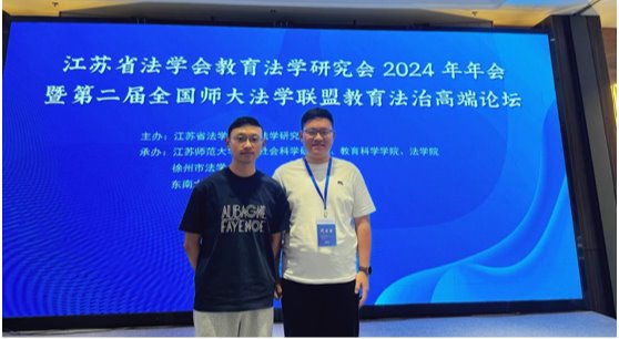6月9日,江苏省法学会教育法学研究会2024年年会暨第二届全国师大法学联盟教育法治高端论坛在徐州市成功举办。本次会议由江苏省法学会教育法学研究会主办,江苏师范大学、徐州市法学会等机构承办。来自全国各地近200名专家学者和学生代表与会。澳門漁人码头 2023级硕士研究生朱亚欧作为学生代表受邀参会,并作专题发言。