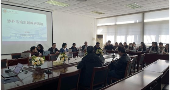 本次教研活动的主题是:正确处理关系,培养高质量涉外法治人才。涉外法治人才培养是新时代我国全面对外开放的战略需求,必须认真办好。涉外法治人才培养过程中,老师和同学们都要注意处理好以下四对关系:一是涉外法治人才培养近期目标与长远目标的关系。本科阶段主要是打基础,要胜任高层次的涉外法治工作,同学们还有必要出国深造,攻读研究生。二是外语学习与专业学习的关系。涉外法治人才必须具备良好的外语基础,我们在人才培养方案中设置了较多的全英文专业主干课程,希望能够实现外语水平与专业能力同步提升。三是涉外课程与法律职业资格考试的关系。涉外法治人才培养方案中体现了“1+10+X”的法学类本科人才培养质量标准,能够满足法律职业资格考试要求,但在侧重点上还是有所差异,学生的选课和听课需要引起足够重视。四是学生与导师、第一课堂与第二课堂的关系。指导老师的职责是为学生提供大学生活的全方位咨询和帮助,以赛促学、促教是教学质量提升的重要途径。
