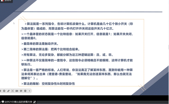 7月26日,举行了第二次读书会,阅读书籍为布莱恩·克里斯汀、汤姆·格里菲思的《算法之美》。朱婕、朱乐扬进行了第一部分的汇报与评议,重点介绍了37%法则和基廷斯指数的算法科学性和可行性,其内在的支撑正是数据的稀缺性,如何获取更有利的数据在寻找最满意决策中同样重要。陈羽柔、朱鑫宇进行了第二部分的汇报与评议,分别介绍了排序与缓存,并通过整理图书、遗忘曲线等案例以此抛砖引玉。贺宇霏进行了第三部分的汇报,王娅老师进行了针对性评议,并围绕时间调度理论进行梳理,介绍了一些专有名词,如最早到期日,最短加工,优先级反转、优先级继承等等。最后,单雨彬、李彦和闫坤进行了第五部分的汇报与评议,讲解了很多由数学模型演变的社科模型,如囚徒困境和纳什均衡等。